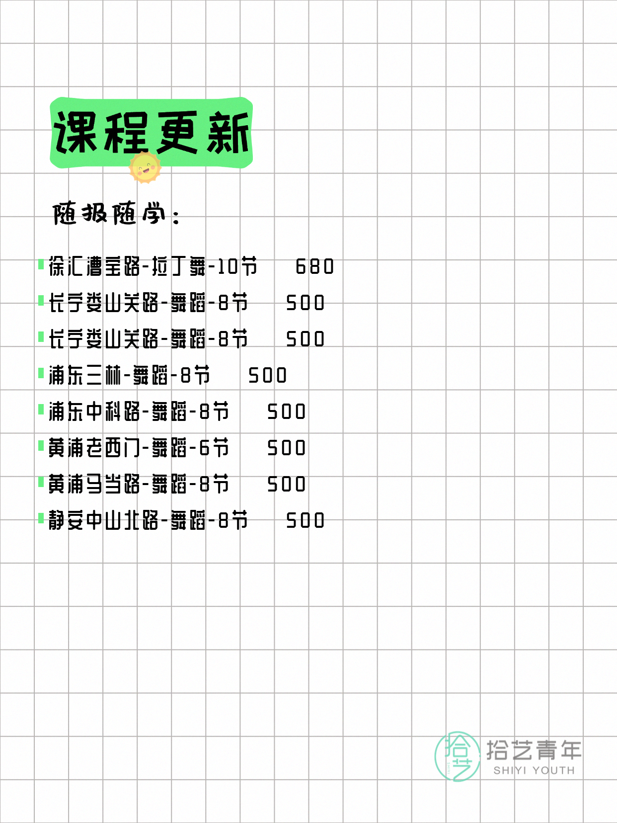💡 提示:以上课程信息来自拾艺青年小程序,课程可能随报名动态变化,具体以小程序实时信息为准。