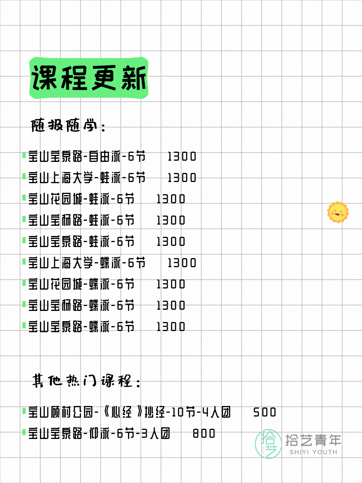 📌 蛙泳-宝山花园城-6节-私教 💰1300