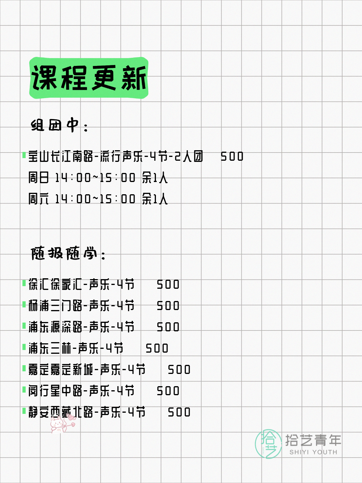 📌 声乐-浦东三林-4节-一人即可 💰500