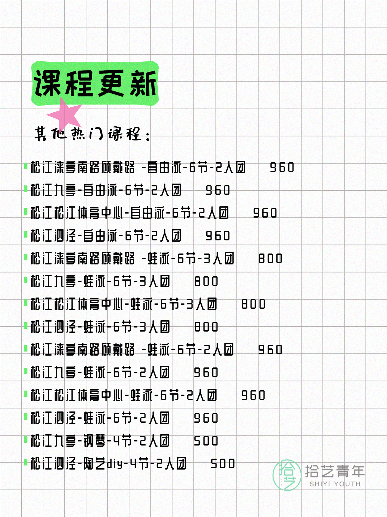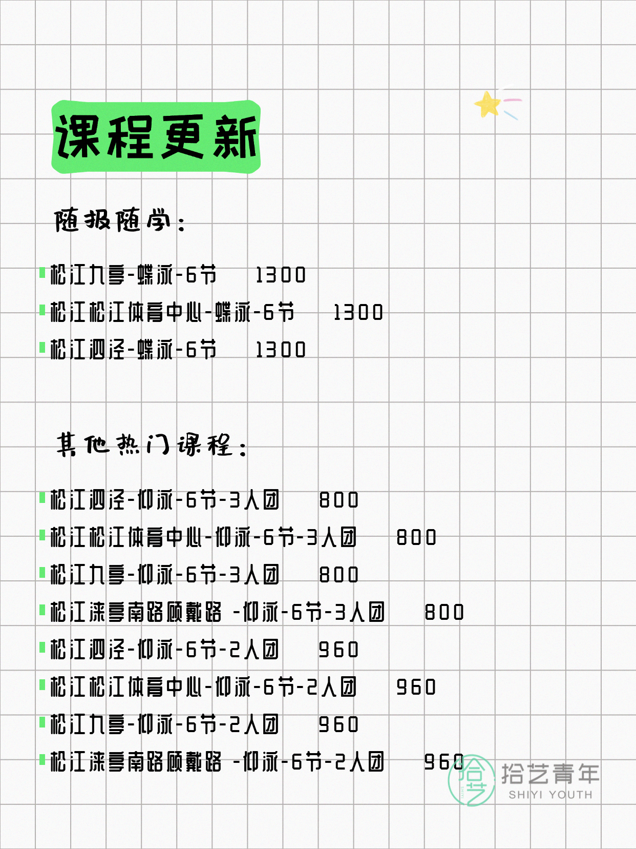 📌 仰泳-松江九亭-6节-私教 💰1300