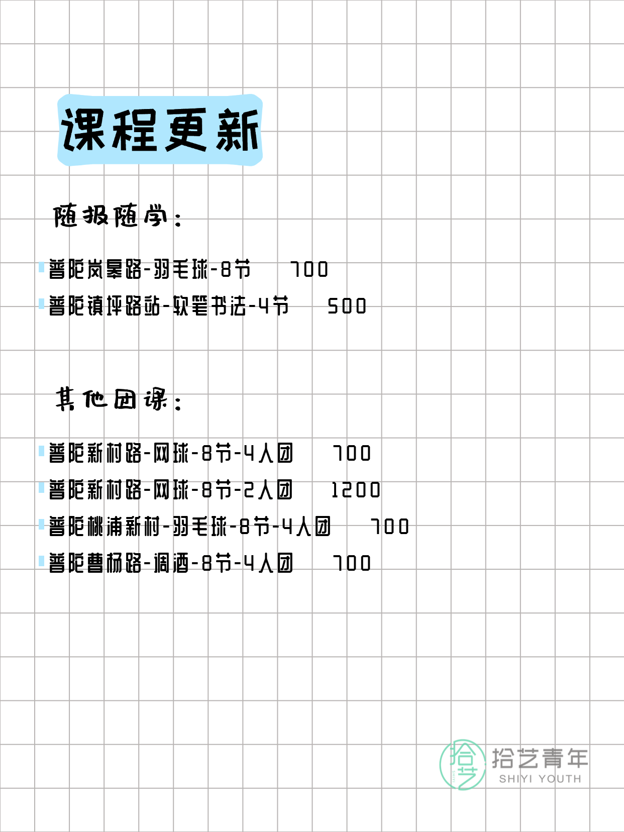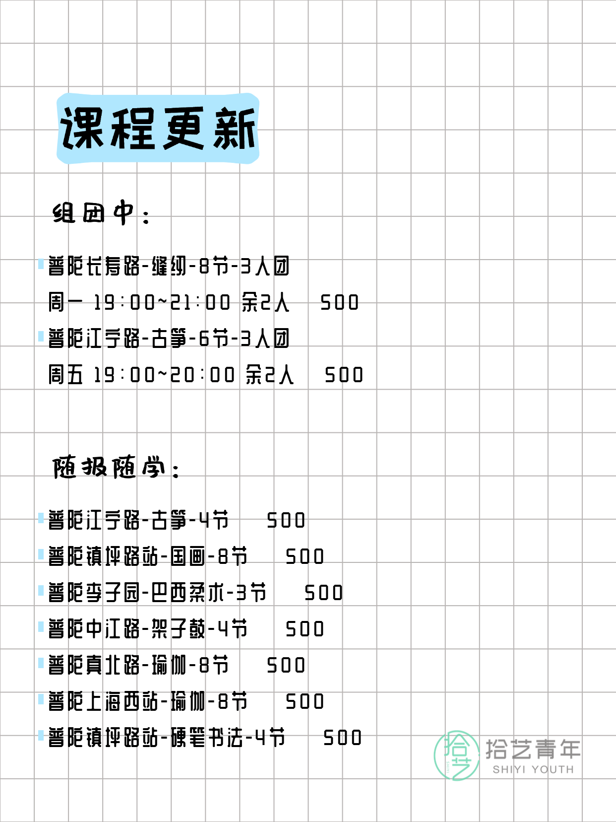 上海普陀今日夜校课程更新 ↓