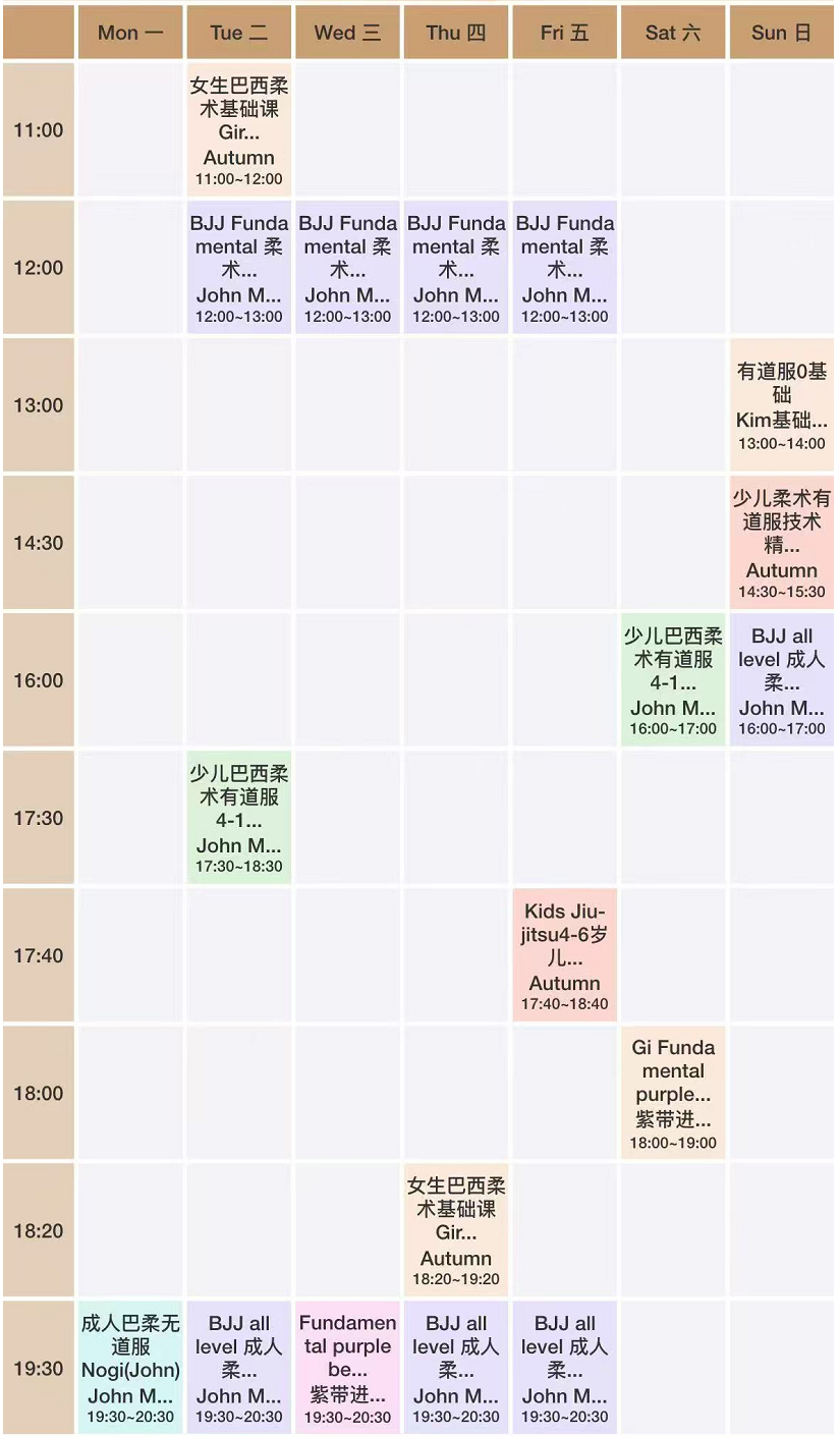 其他费用非NoGI 课程,道服课程需租赁道服35元,也可自行购买