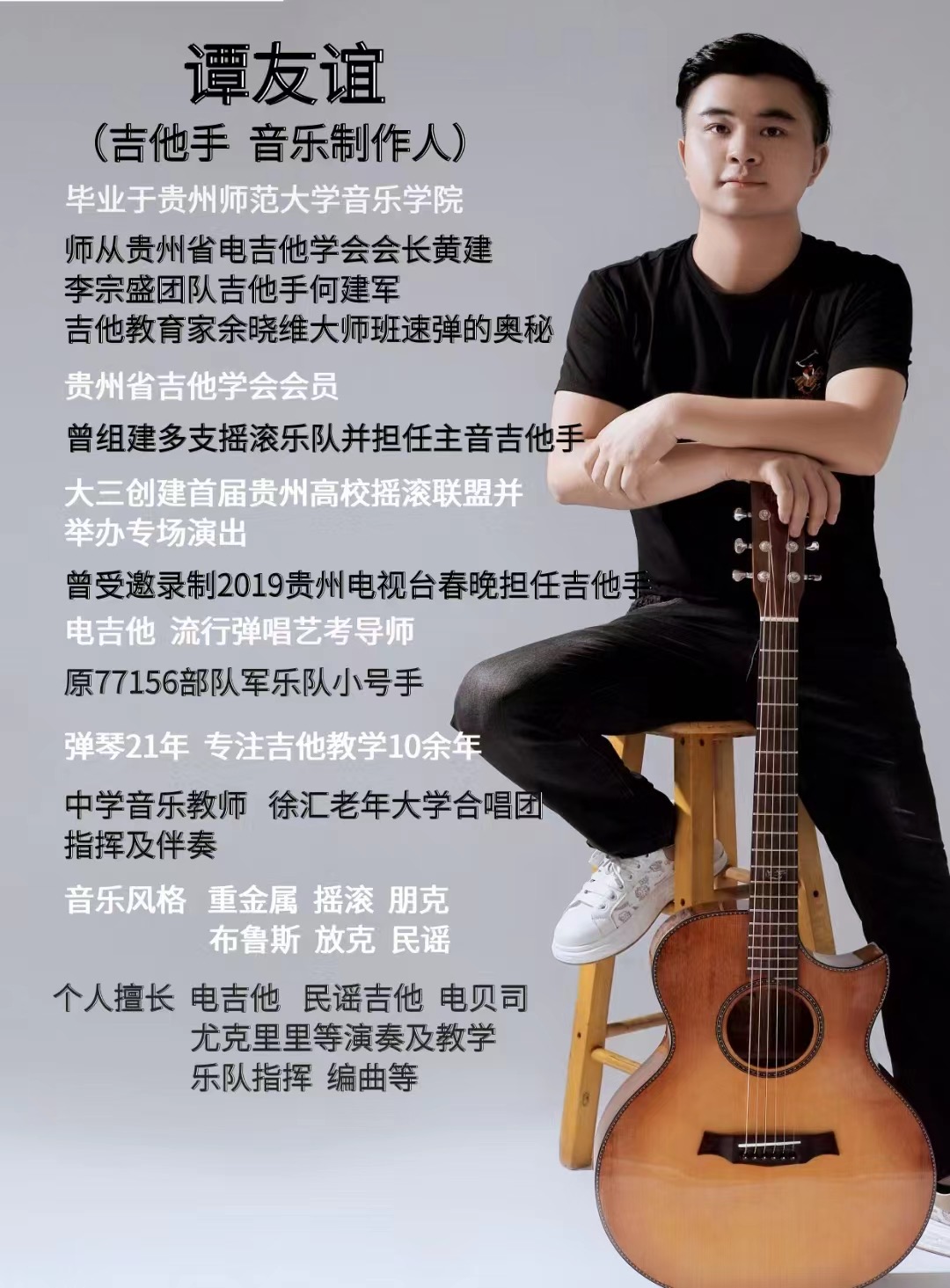 师从贵州省电吉他学会会长黄建