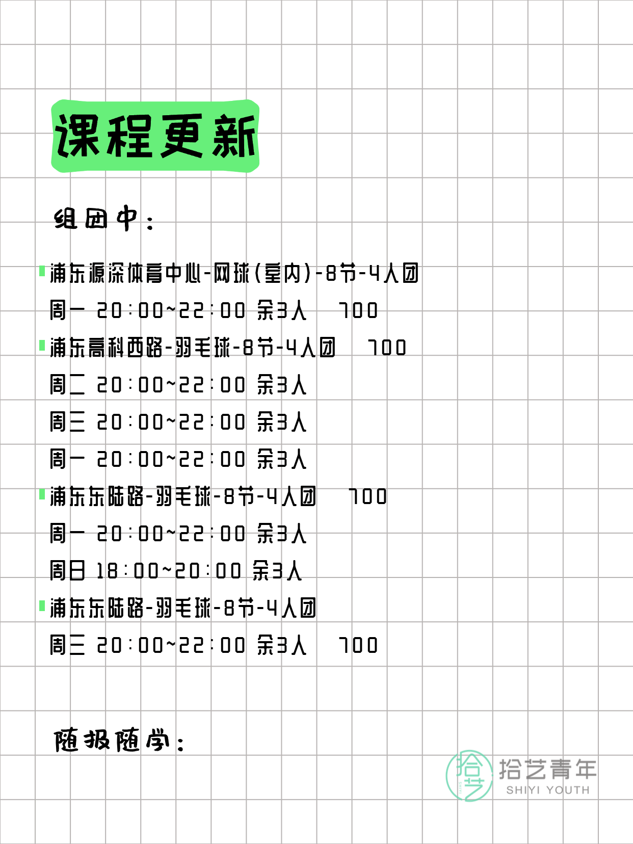🔥 羽毛球-浦东高科西路-8节-4人团 💰700