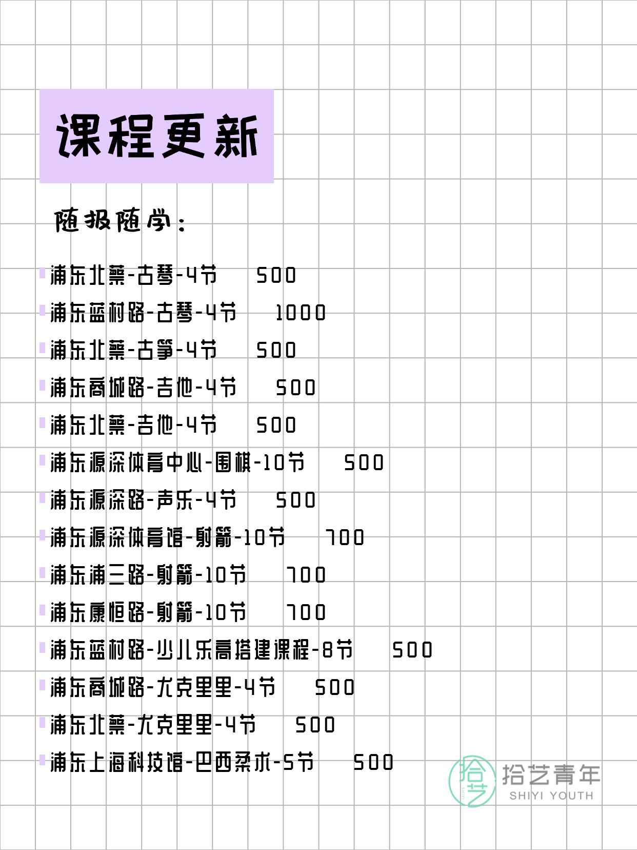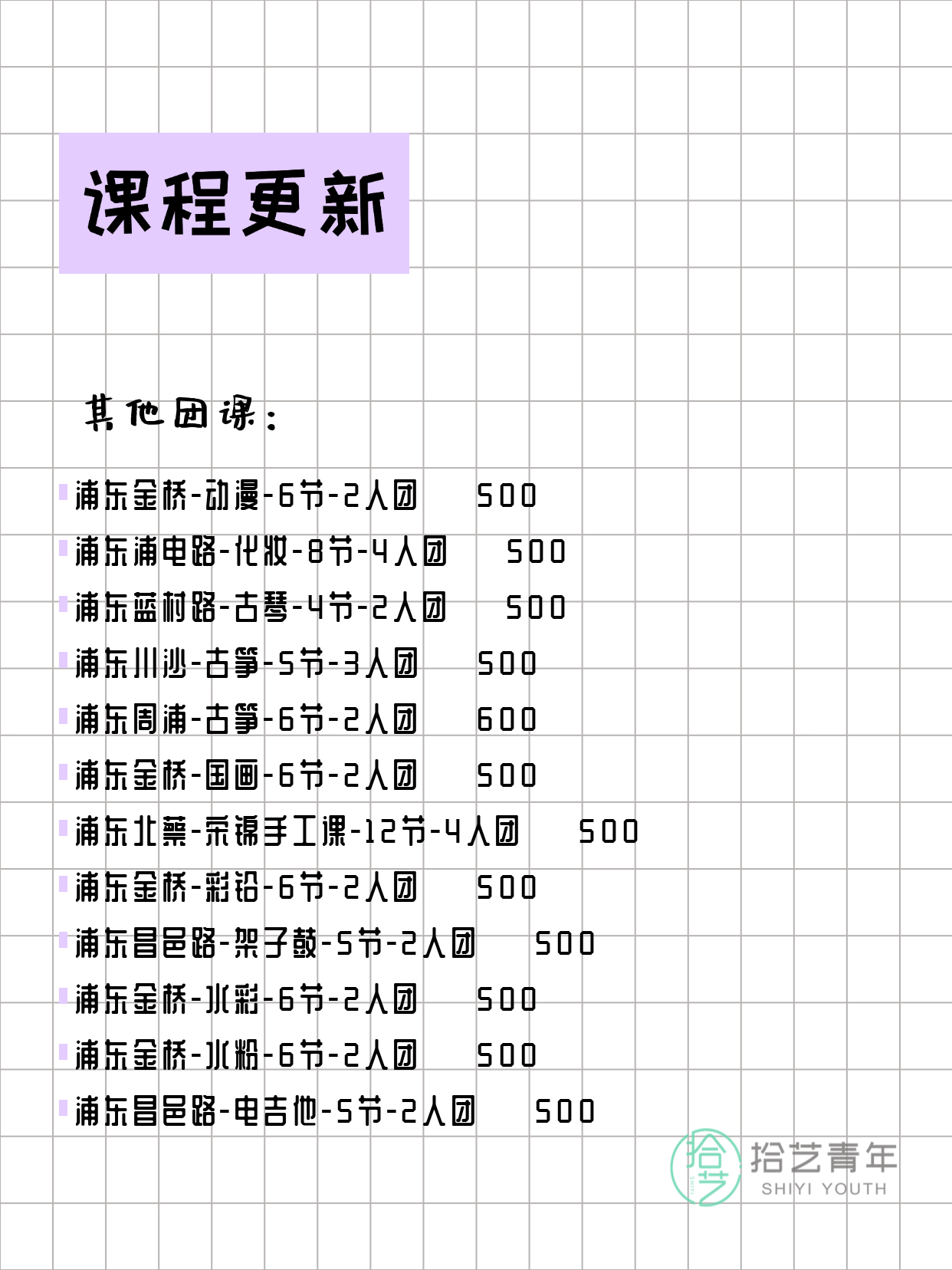 - 浦东川沙-古筝-5节-3人团 💰 500