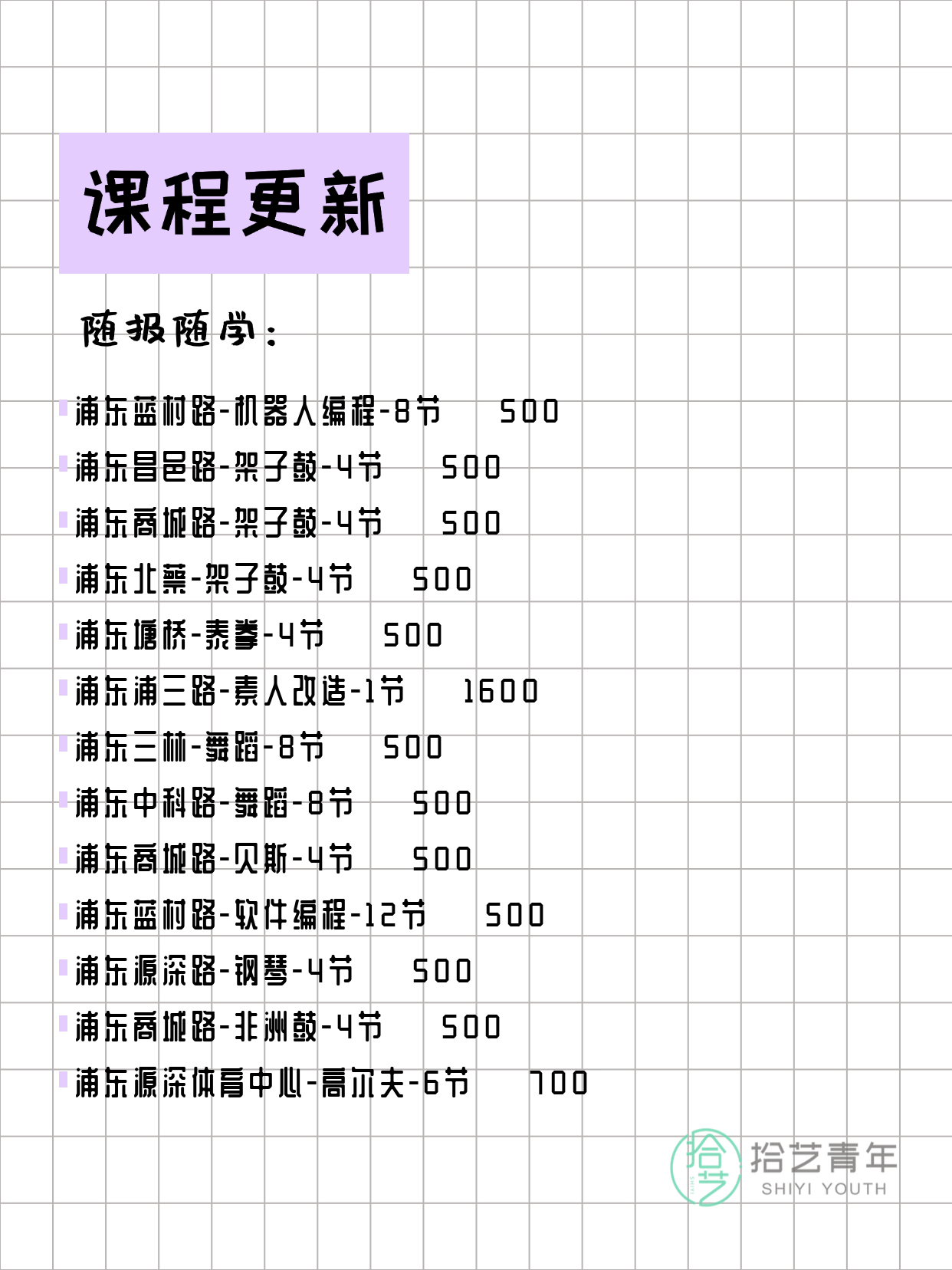 #上海夜校 #浦东夜校 #夜校课表