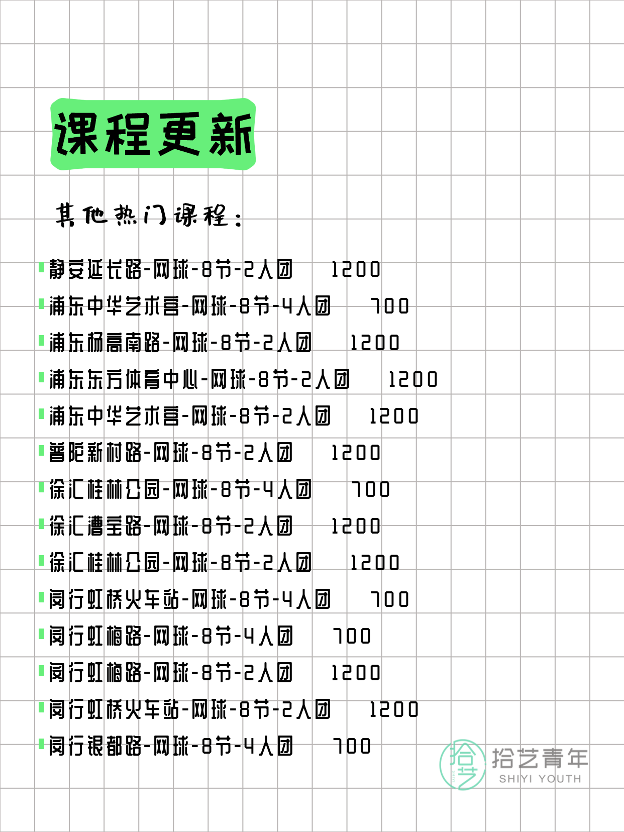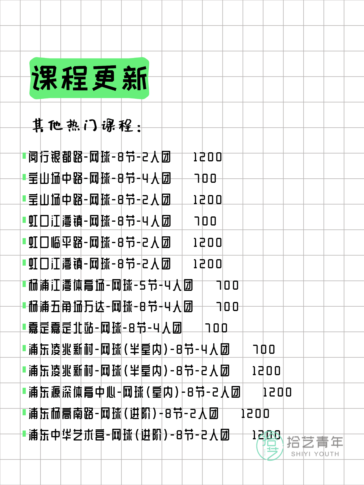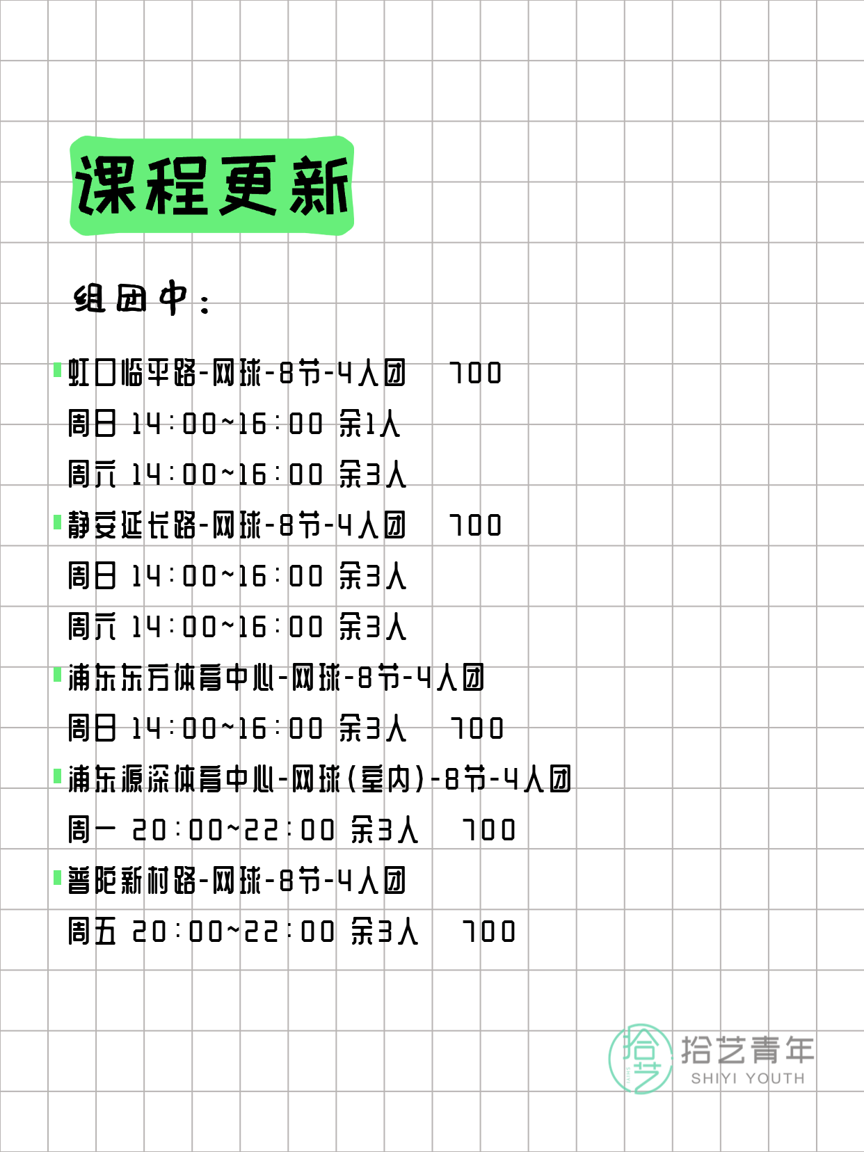 🔥 网球-普陀新村路-8节-4人团 💰700