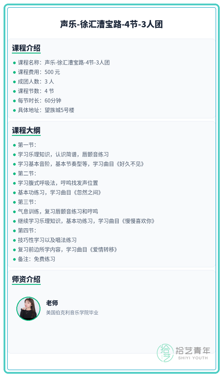 #上海夜校 #徐汇夜校 #声乐课程 #夜校拼团 #上海线下课