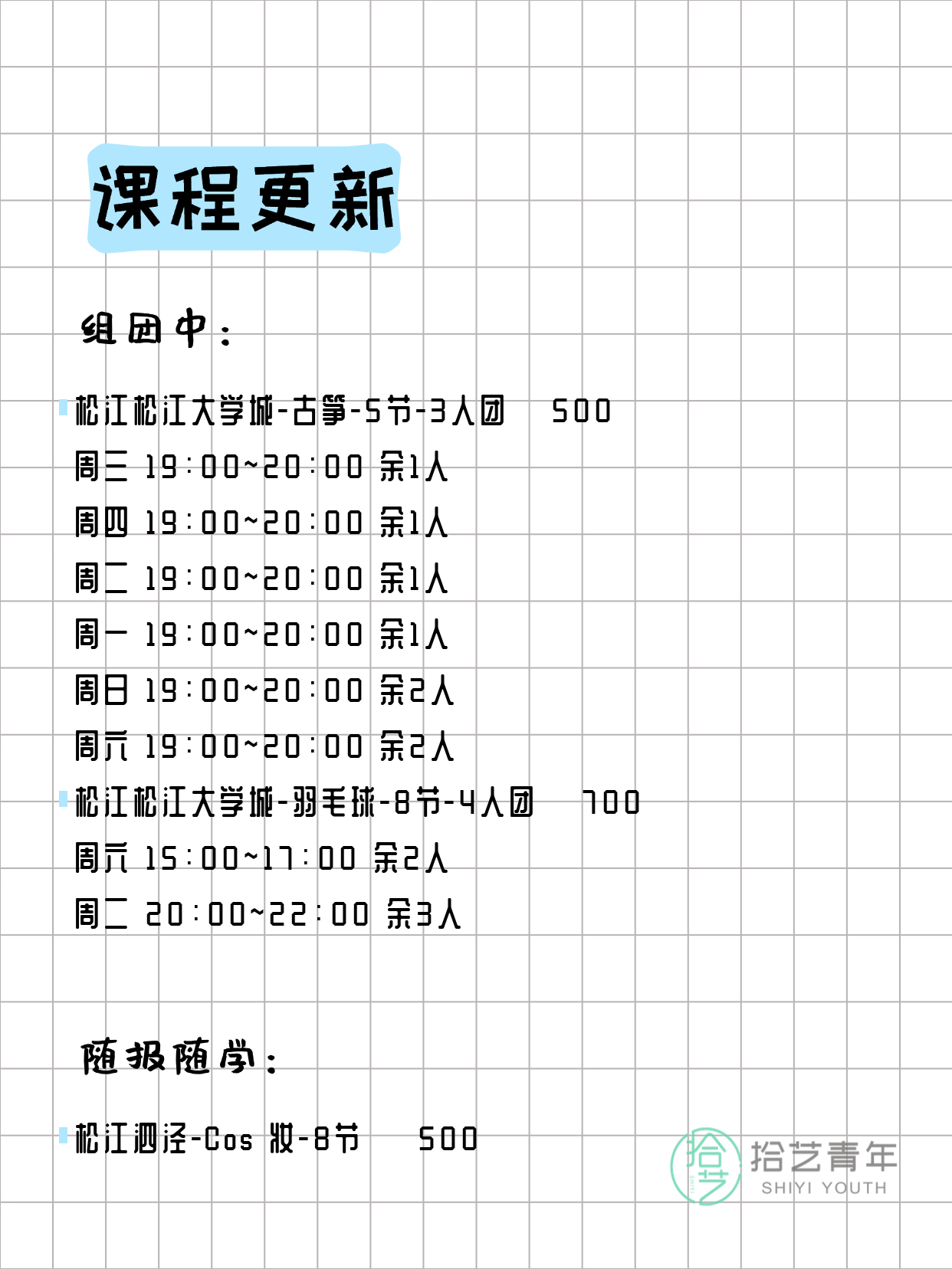 - 松江松江大学城-古筝-5节-3人团 周一 19:00-20:00 余1人 💰 500