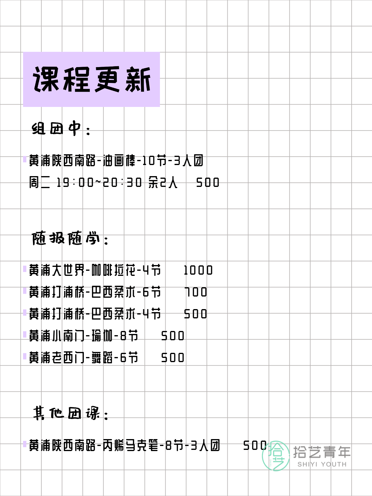 - 黄浦陕西南路-油画棒-10节-3人团 周二 19:00-20:30 余2人 💰 500