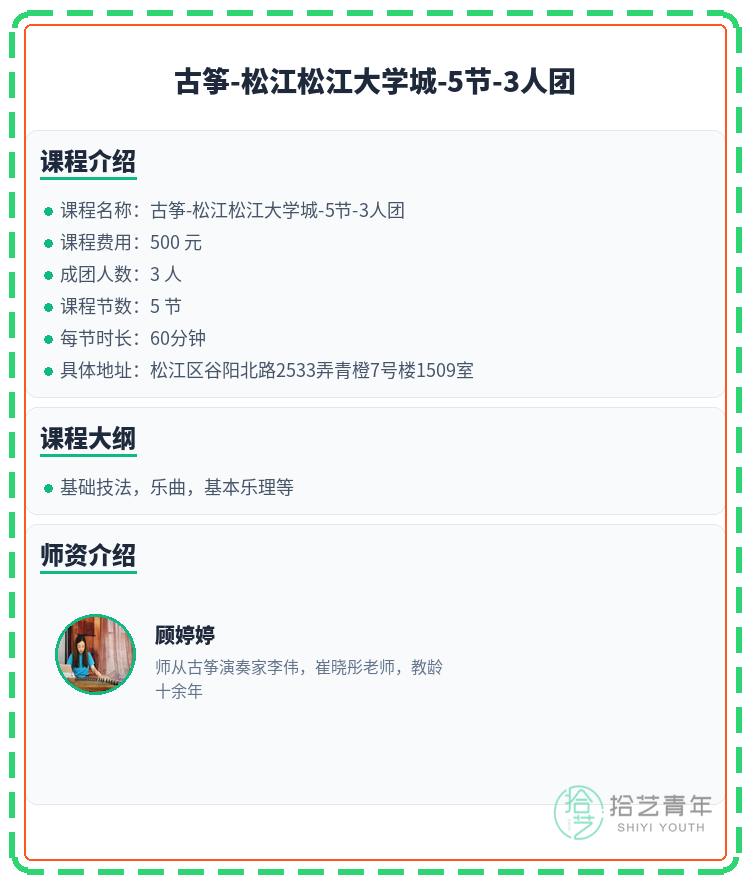 资讯>综合>正文松江古筝课差1人就开课啦拾艺青年2026-03-221 / 2松江大学城旁古筝课就差你!快搭上末班车🪕🏫 上课地点:松江区谷阳北路2533弄青橙7号楼150📅 课程安排:共5节 | 周二 19:00-20:00📖 课程大纲:基础技法,乐曲,基本乐理等👥 3人团 | 已报2人 | 还差1人开课#上海夜校 #松江夜校 #古筝课程 #夜校拼团 #上海线下课相关标签#上海夜校#松江夜校#古筝课程#夜校拼团#上海线下课