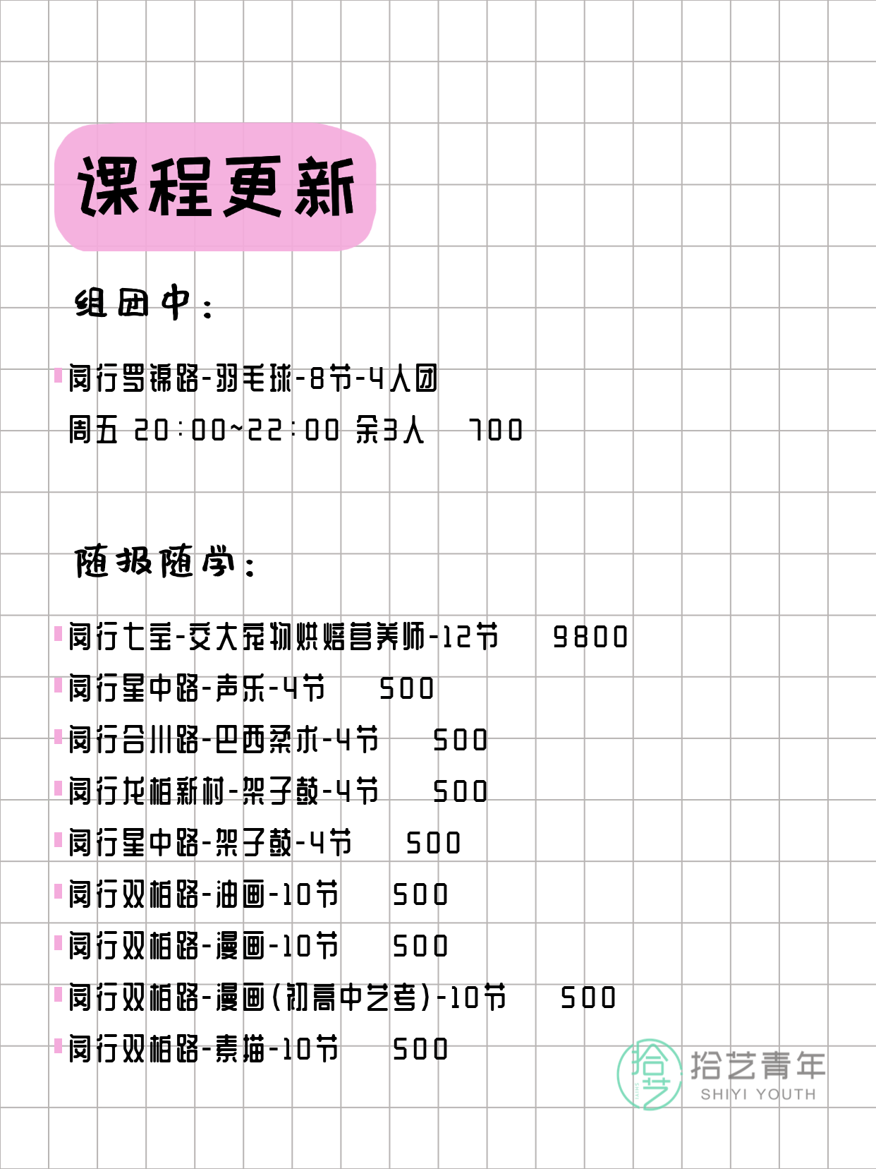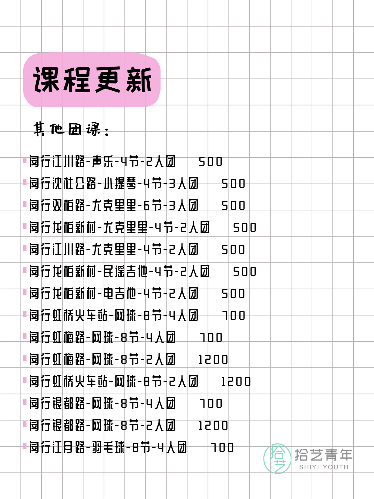 - 闵行双柏路-声乐-6节-3人团 💰 500