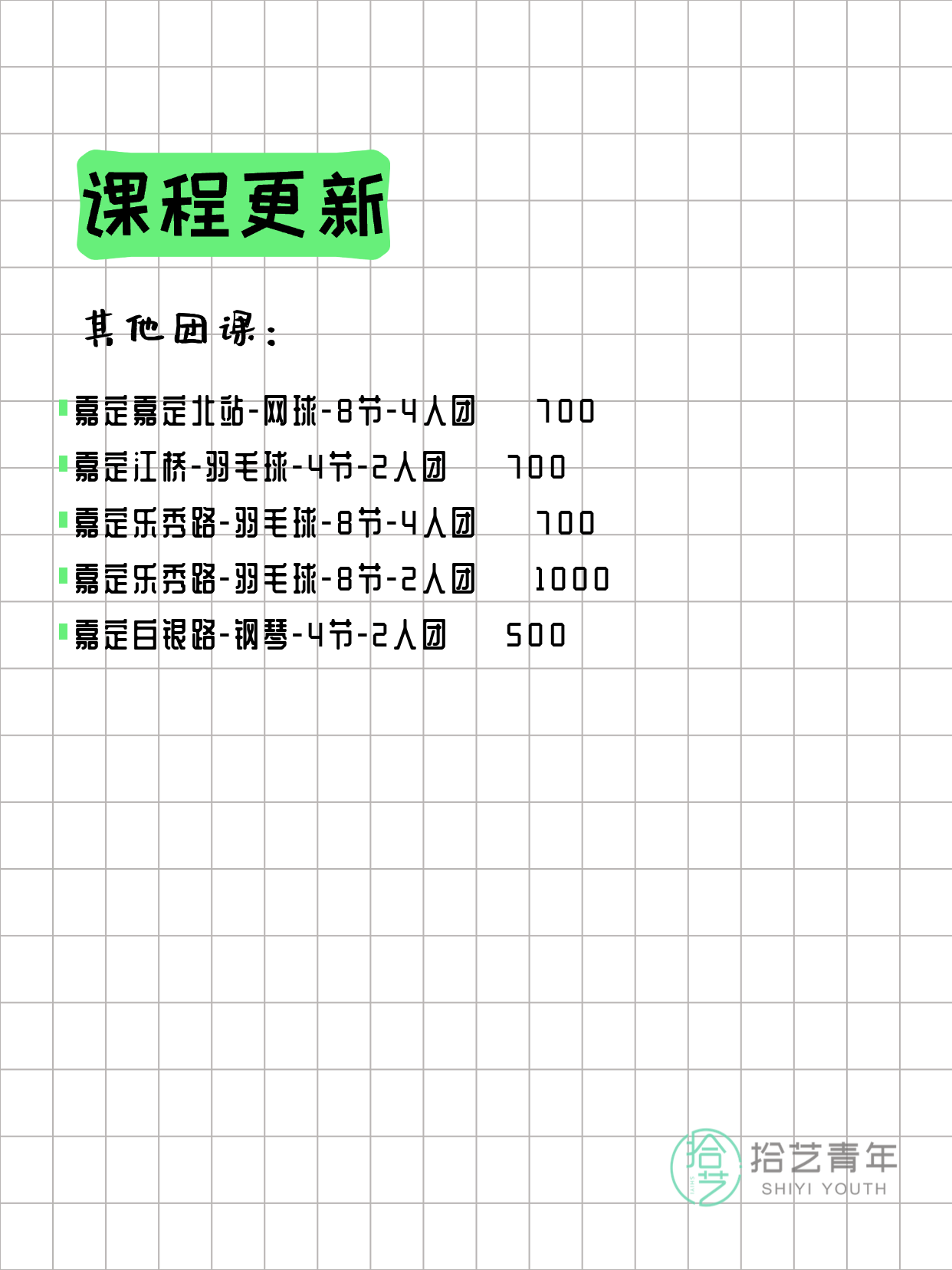 - 嘉定嘉定北站-网球-8节-4人团 💰 700
