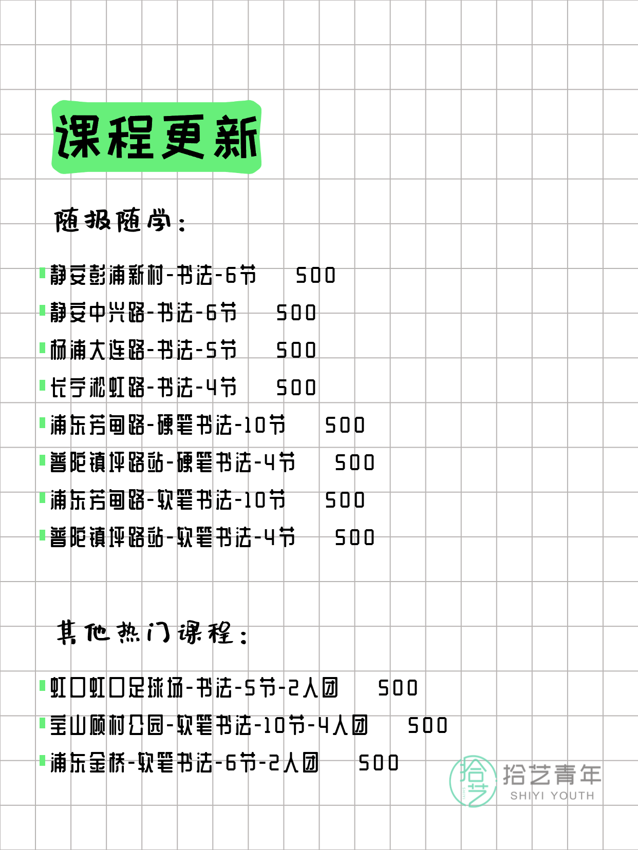 ⭐ 软笔书法-宝山顾村公园-10节-4人团 💰500