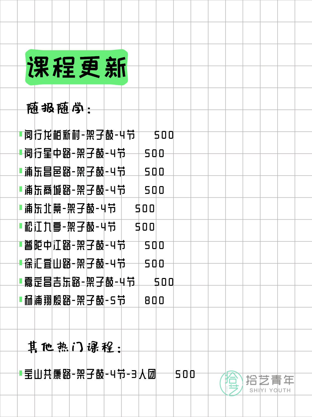 📌 架子鼓-浦东商城路-4节-一人即可 💰500