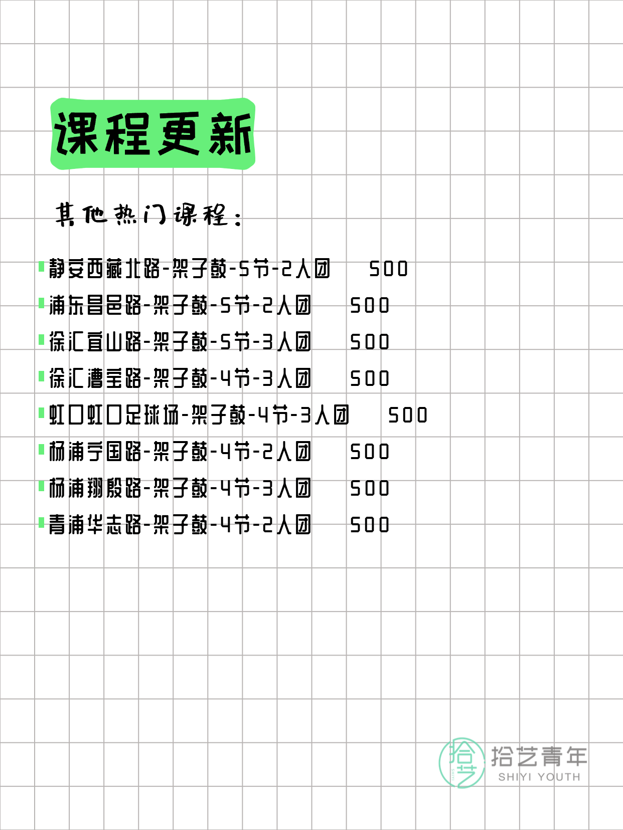 💡 提示:以上课程信息来自拾艺青年小程序,课程可能随报名动态变化,具体以小程序实时信息为准。
