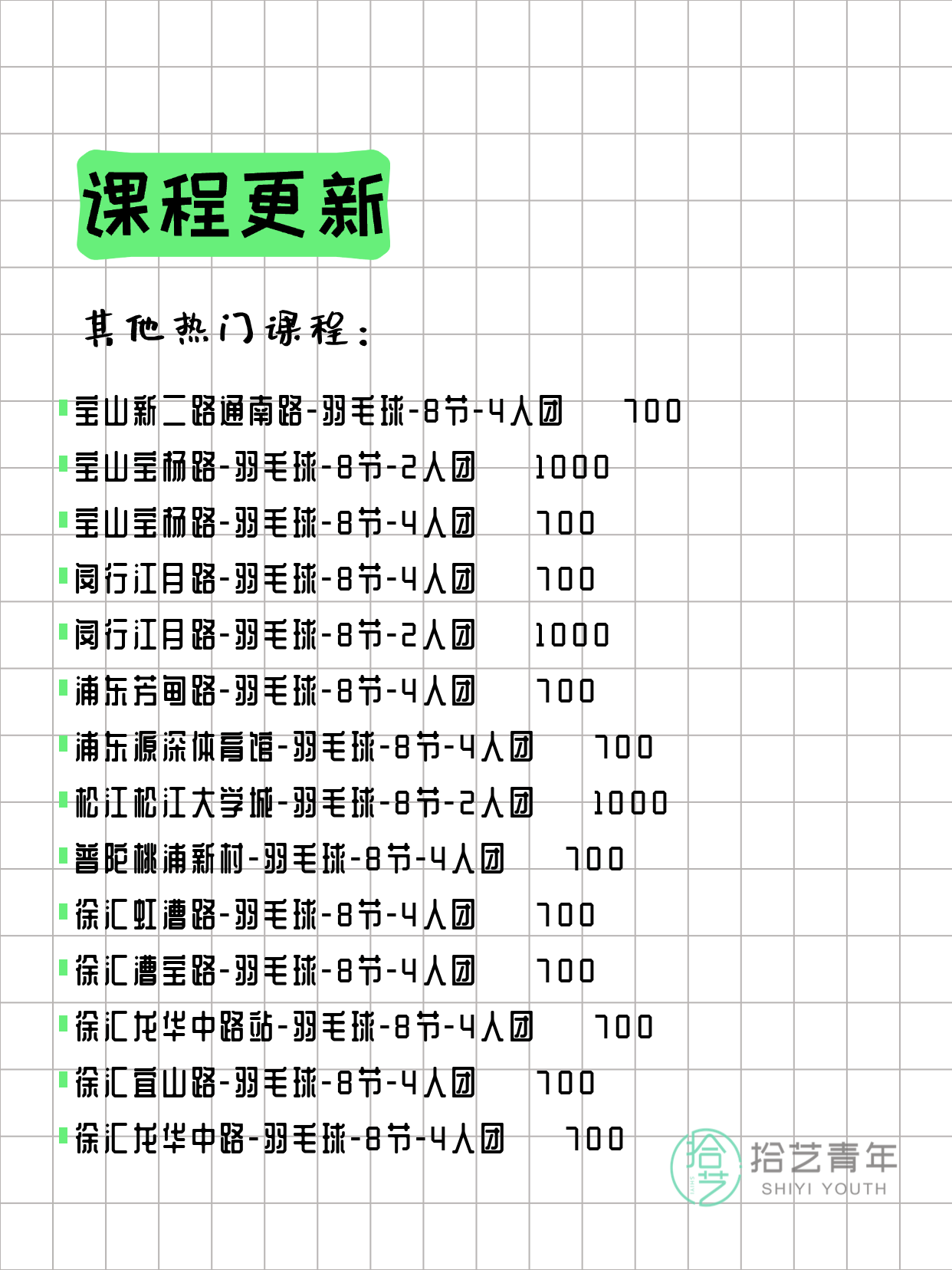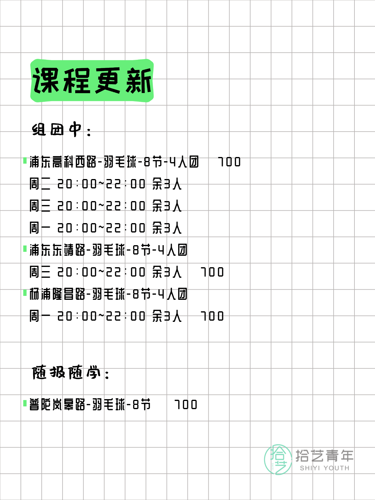🔥 羽毛球-浦东高科西路-8节-4人团 💰700