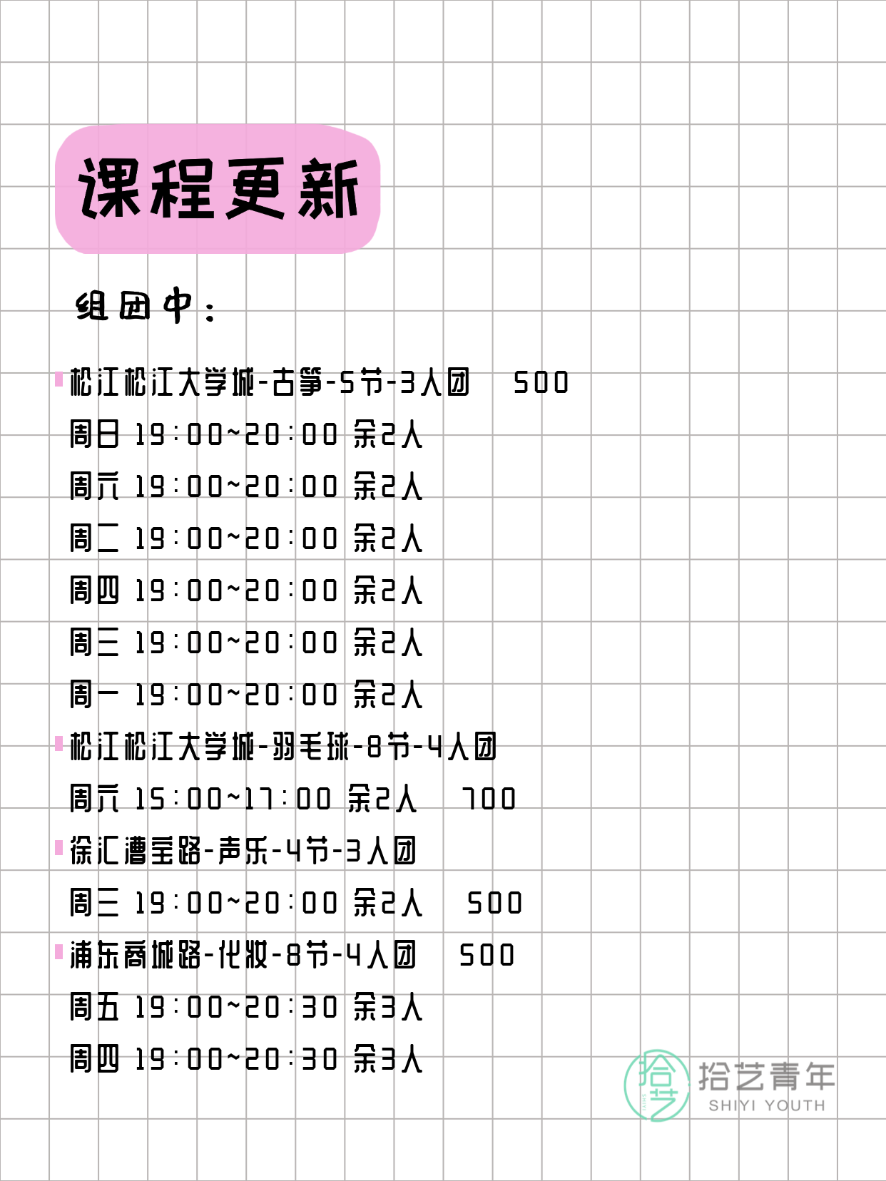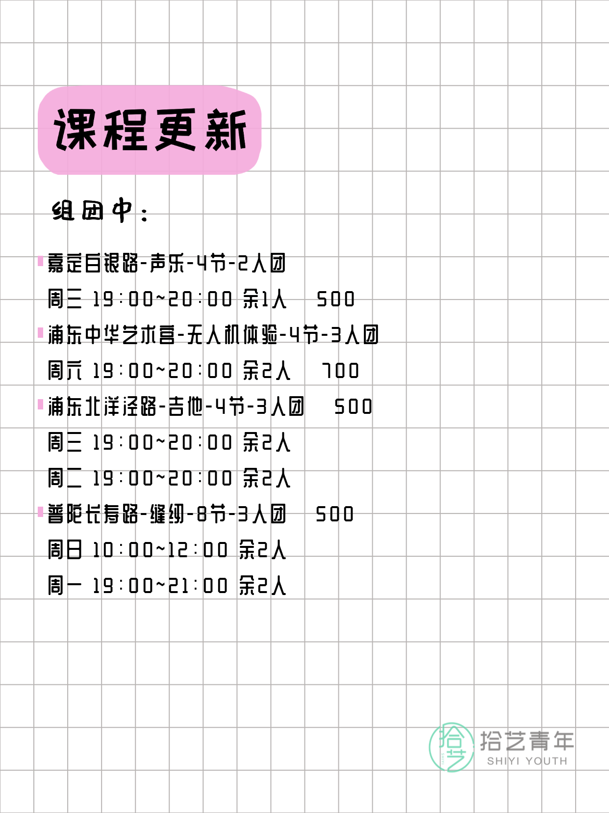 - 嘉定白银路-声乐-4节-2人团 周三 19:00-20:00 余1人 💰 500
