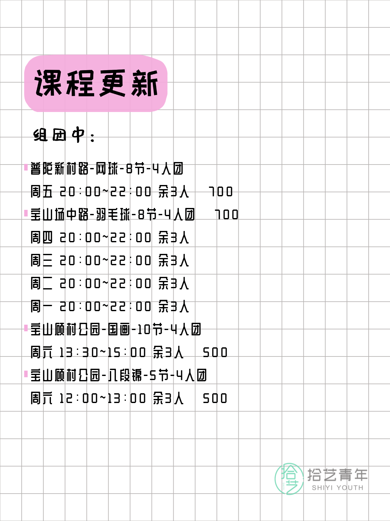 - 徐汇常熟路-中医-8节-4人团 周一 19:00-20:30 余1人 💰 500