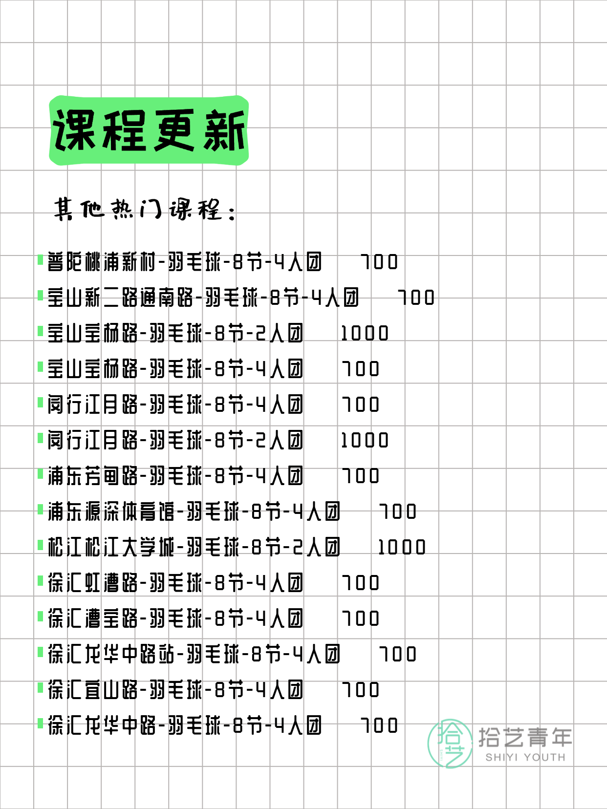 📌 羽毛球-普陀岚皋路-8节-一人即可 💰700