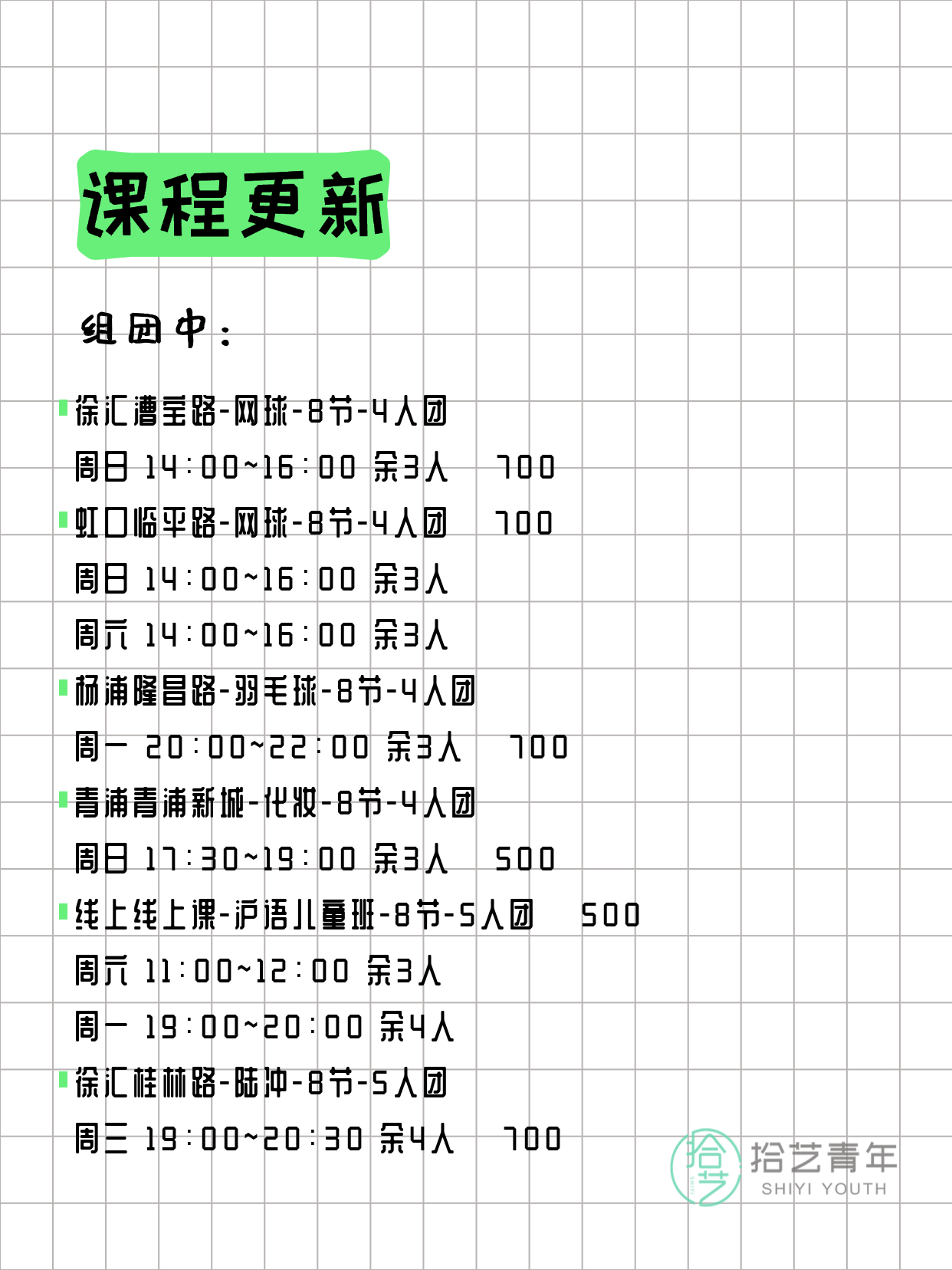 资讯>综合>正文3月28日上海夜校课程合集拾艺青年2026-03-281 / 17📊 本期课程概况• 总课程数:369门• 组团中课程:70门• 覆盖区域:15个区详见图片,欢迎报名咨询。💡 提示:以上课程信息来自拾艺青年小程序,课程可能随报名动态变化,具体以小程序实时信息为准。👉 微信小程序链接:#小程序://拾艺青年/WmfwH22mnQUxZwb