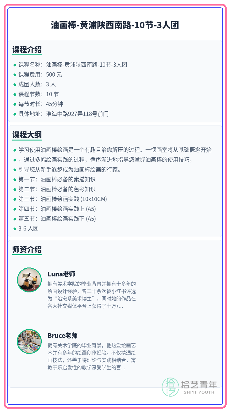 #上海夜校 #黄浦夜校 #油画棒课程 #夜校拼团 #上海线下课