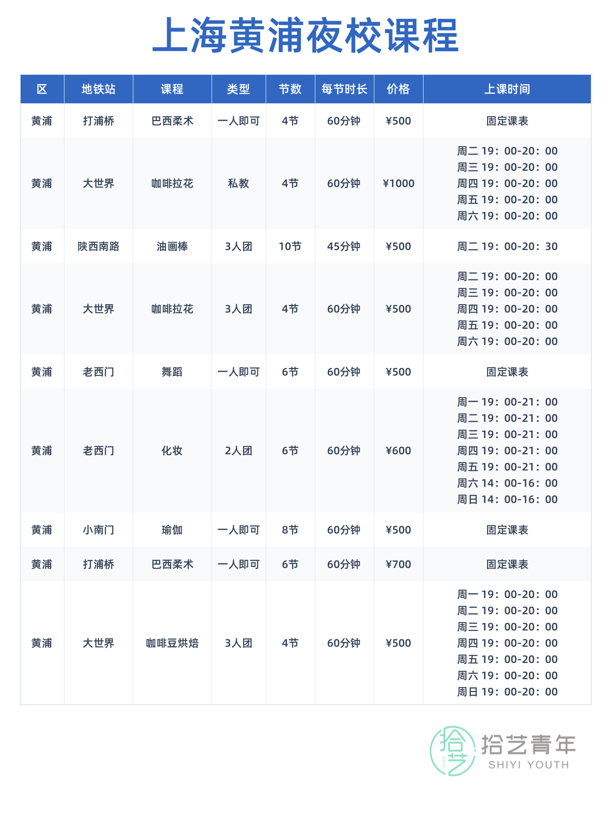 资讯>综合>正文黄浦也出了!!拾艺青年2026-03-291 / 2黄浦打工人的精神基地📌咖啡豆烘焙 📌咖啡拉花 🧘瑜伽 📌油画棒 📌巴西柔术等等总有一门是你的菜相关标签##上海夜校##黄浦##瑜伽##舞蹈