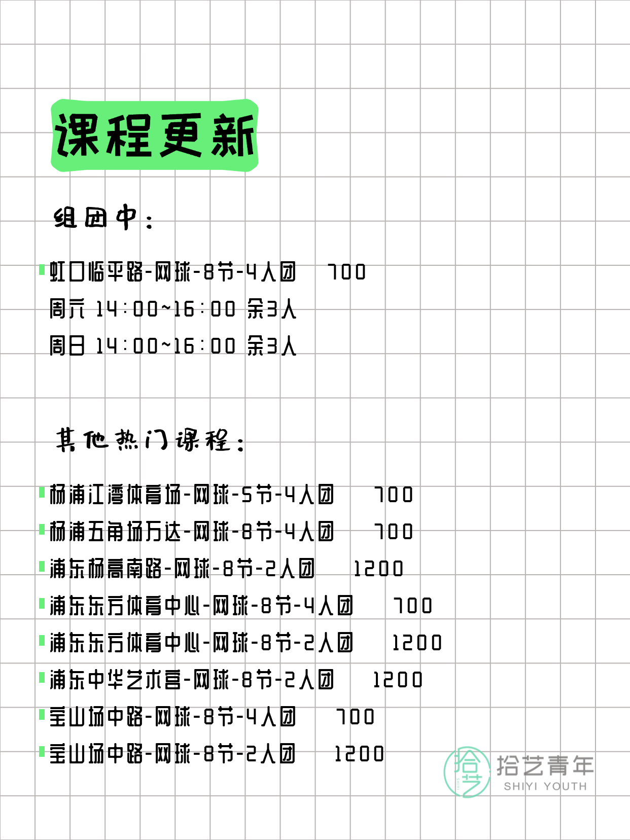 🔥 网球-普陀新村路-8节-4人团 💰700