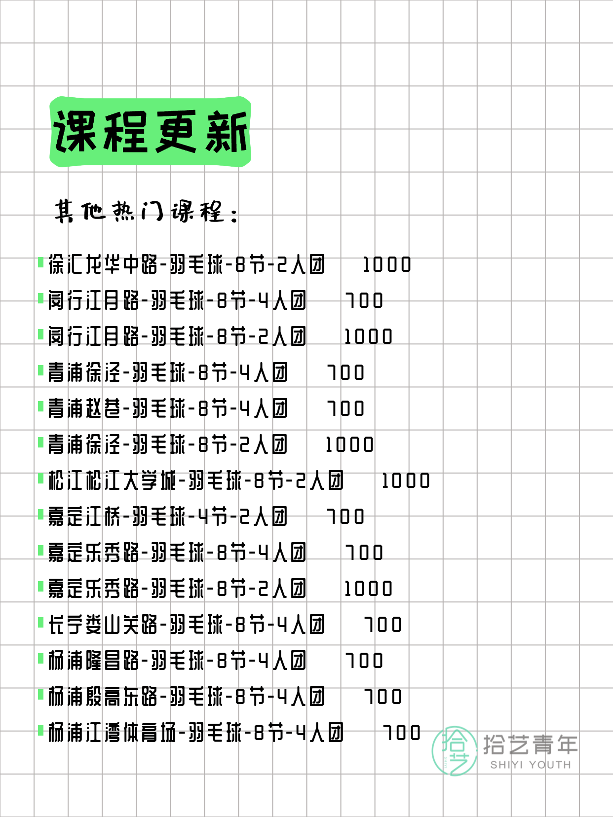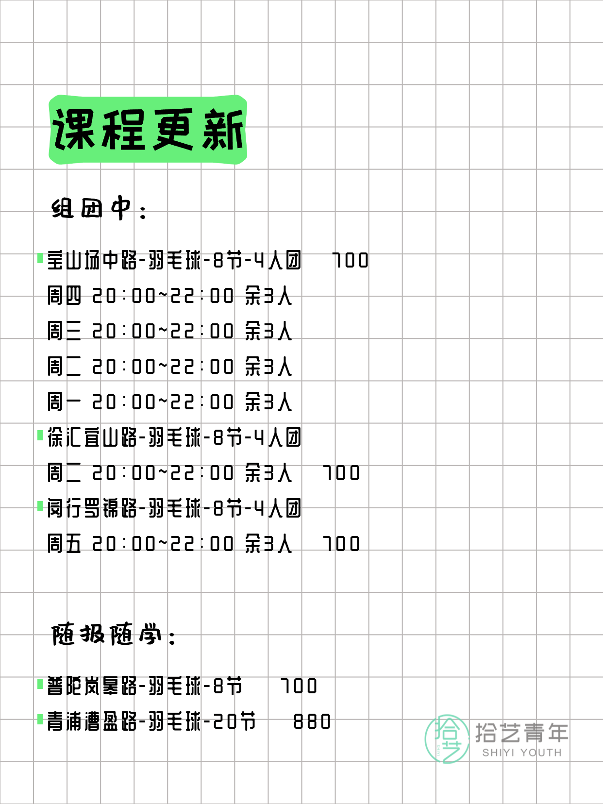 📌 羽毛球-青浦漕盈路-20节-一人即可 💰880