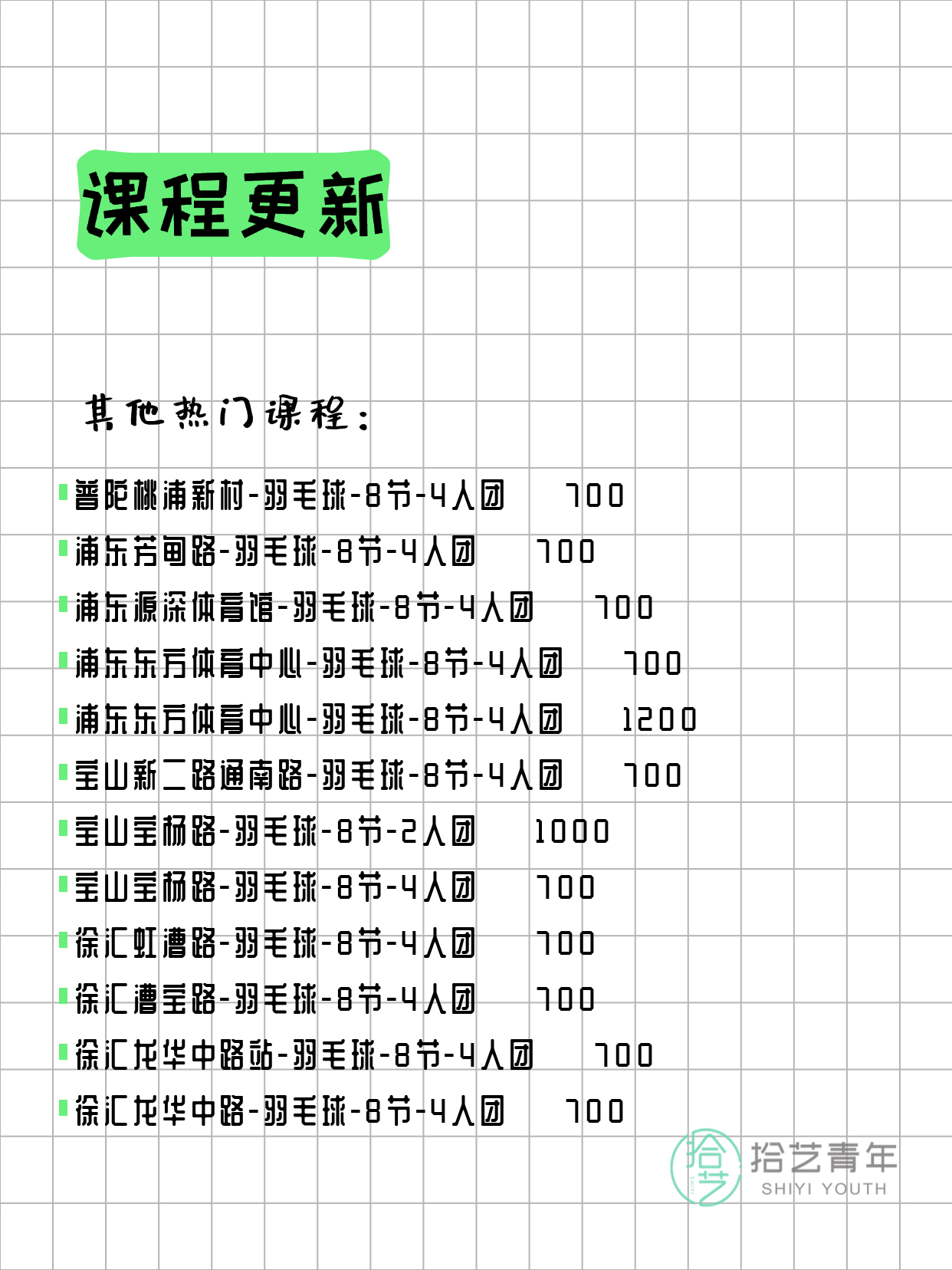 ⭐ 羽毛球-宝山宝杨路-8节-4人团 💰700