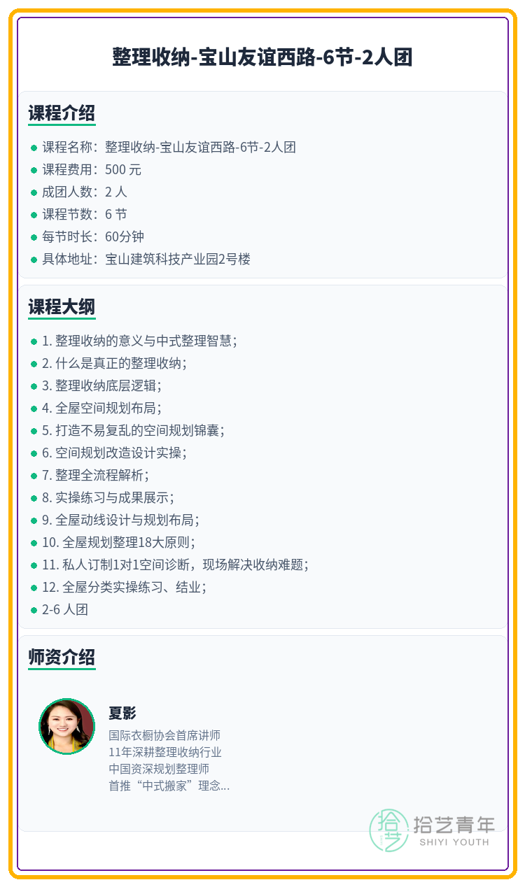 #上海夜校 #宝山夜校 #整理收纳课程 #夜校拼团 #上海线下课