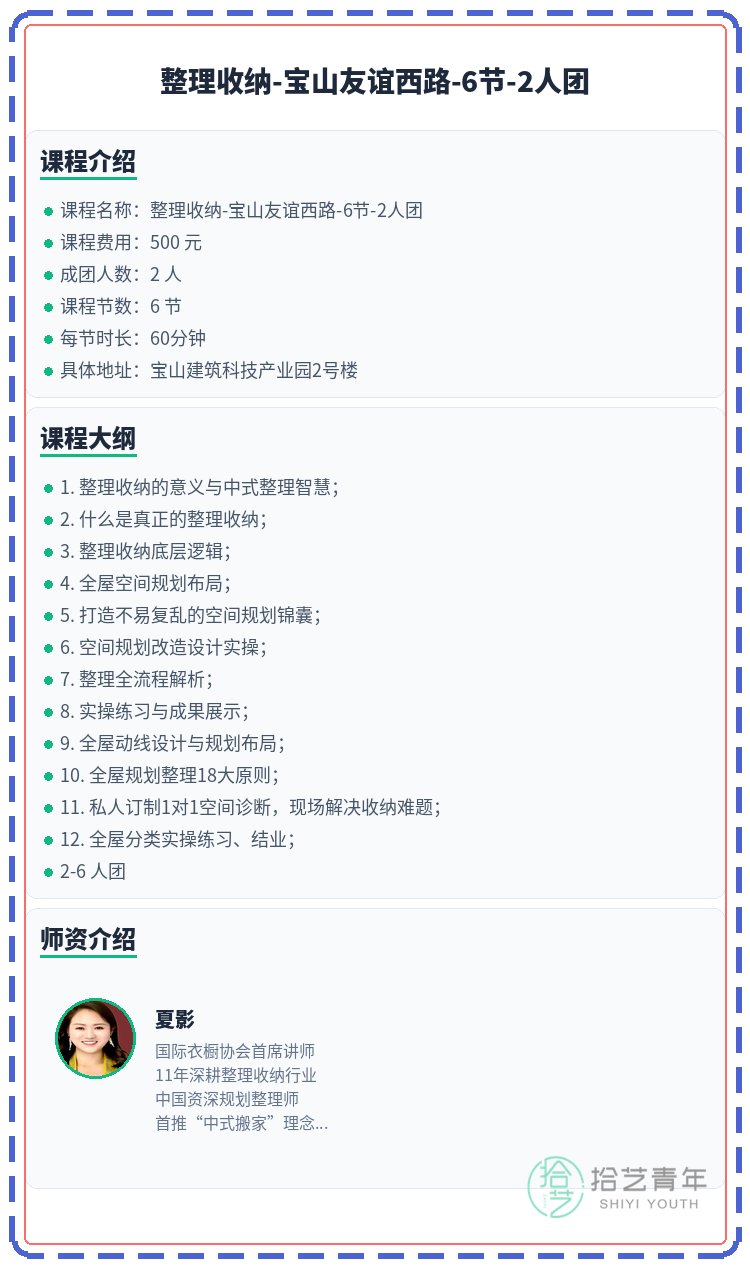 #上海夜校 #宝山夜校 #整理收纳课程 #夜校拼团 #上海线下课