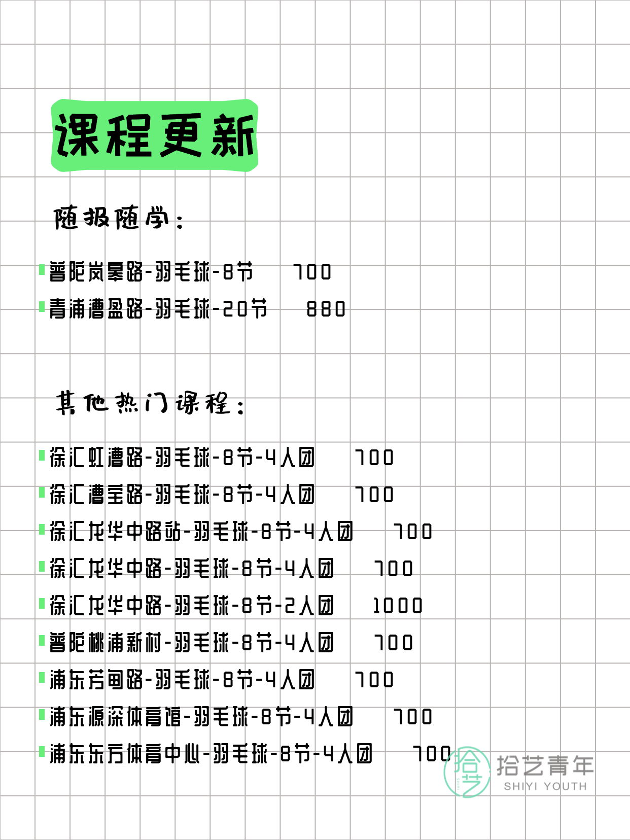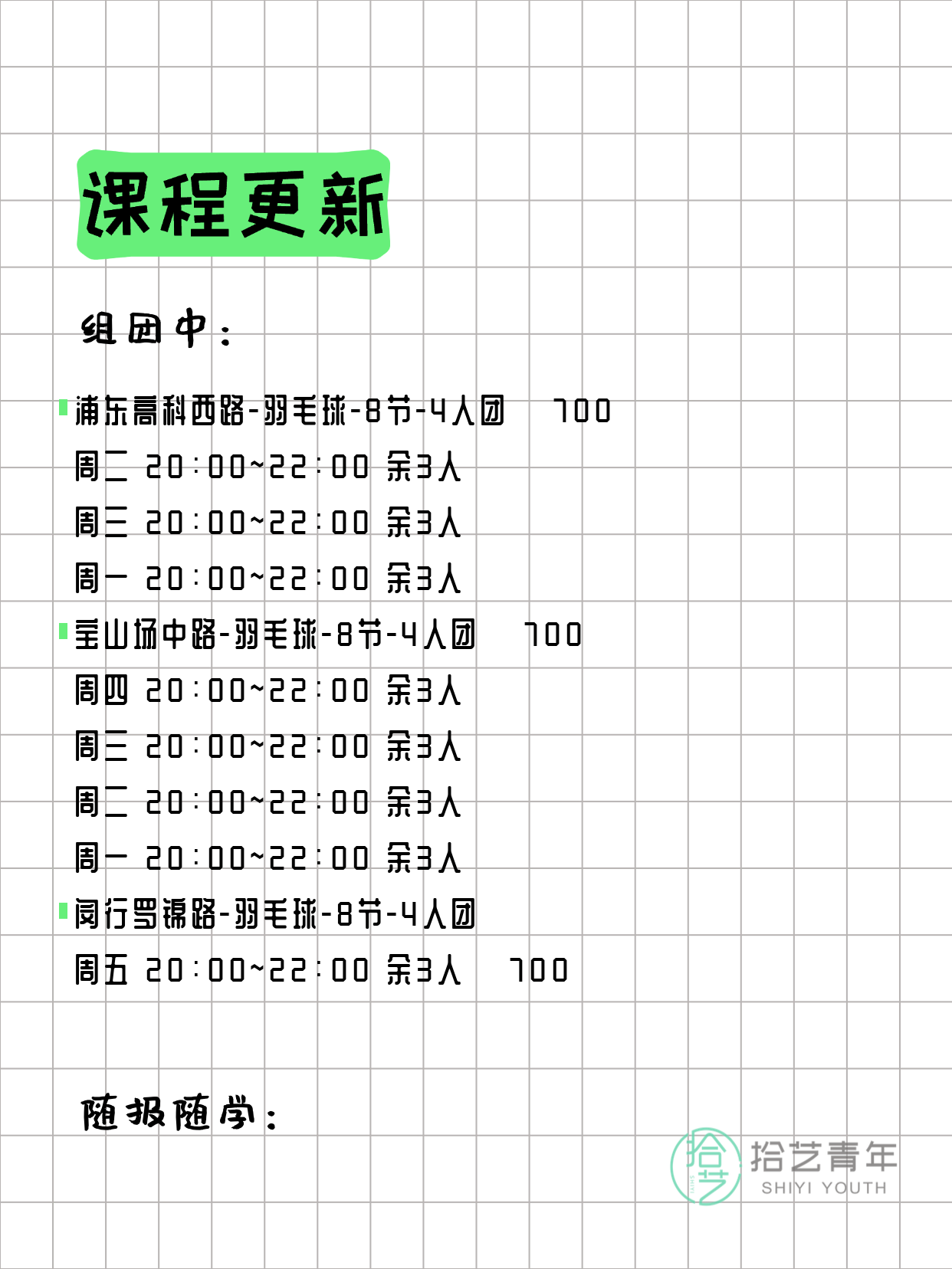 📌 羽毛球-青浦漕盈路-20节-一人即可 💰880