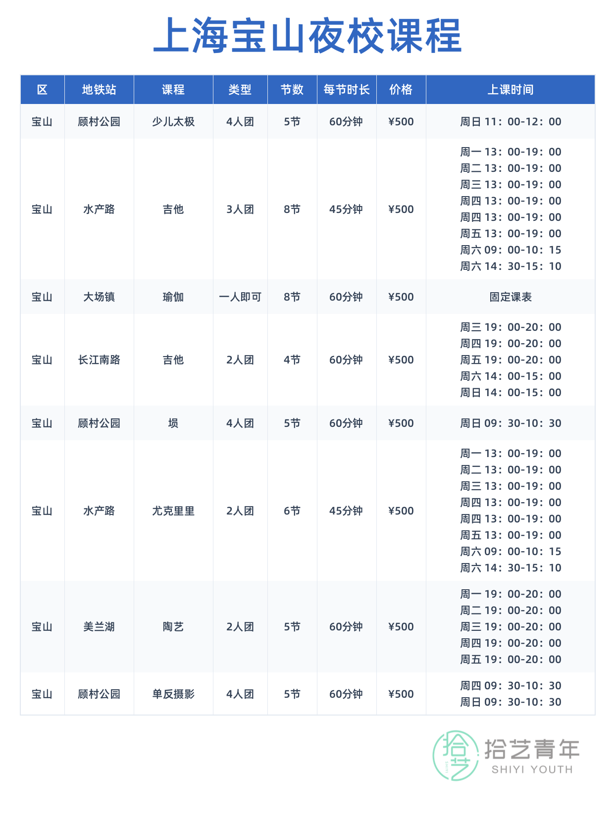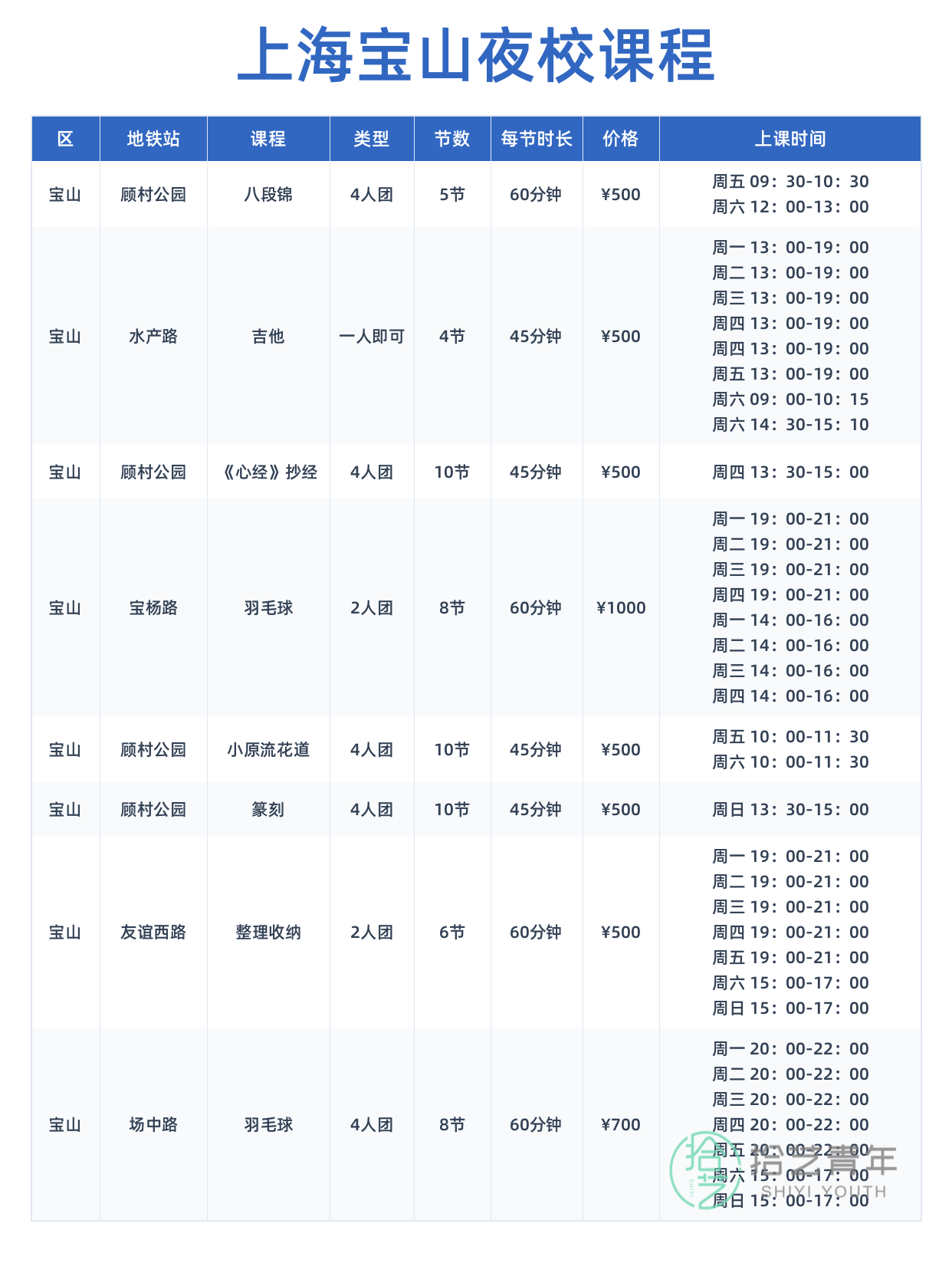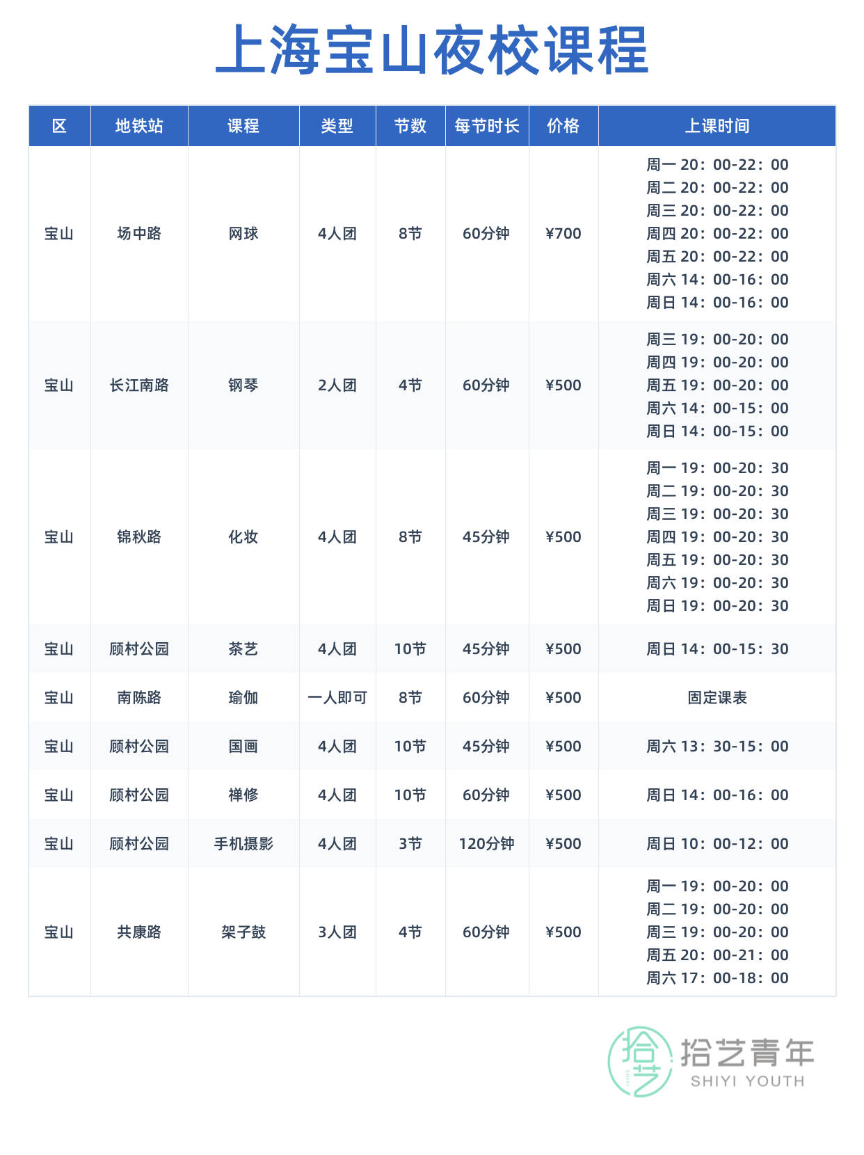 资讯>综合>正文宝山也出了!!拾艺青年2026-04-031 / 4宝山打工人注意下班步行就能到的夜校新课表来了🏸羽毛球 🥁架子鼓 💄化妆 📌国画 🏺陶艺等等相关标签##上海夜校##宝山##架子鼓##化妆