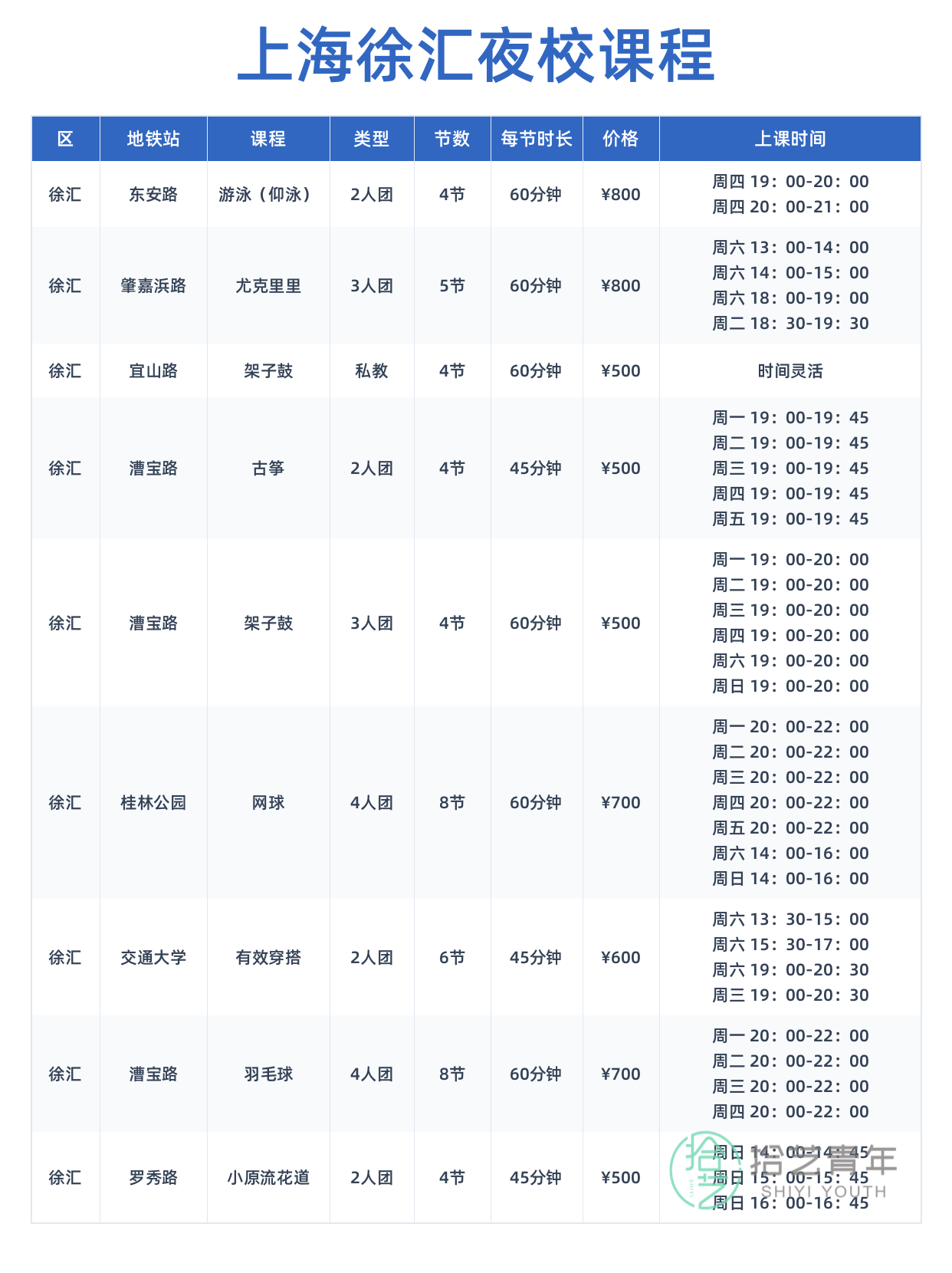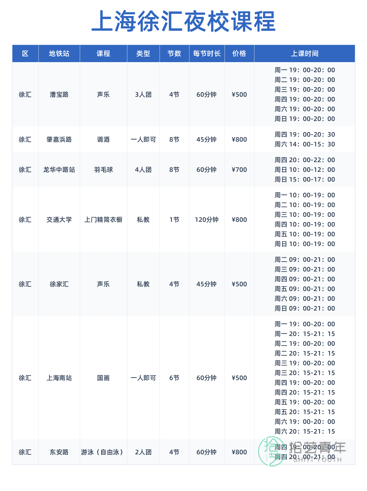 资讯>综合>正文徐汇夜校来了!拾艺青年2026-04-031 / 4徐汇打工人注意下班步行就能到的夜校新课表来了📌游泳(蝶泳) 📌游泳(仰泳) 📌有效穿搭 🎸尤克里里 📌国画等等相关标签##上海夜校##徐汇##吉他##网球