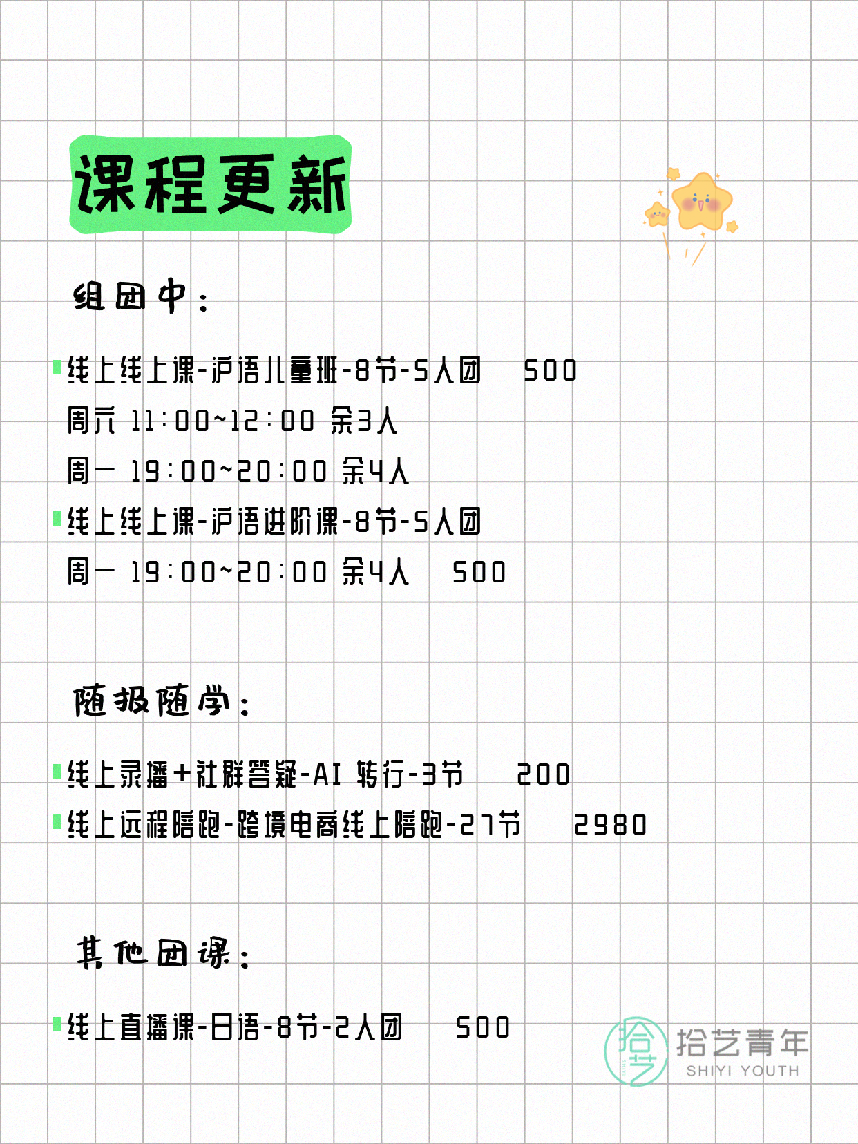 - 线上线上课-沪语-8节-5人团 💰 500