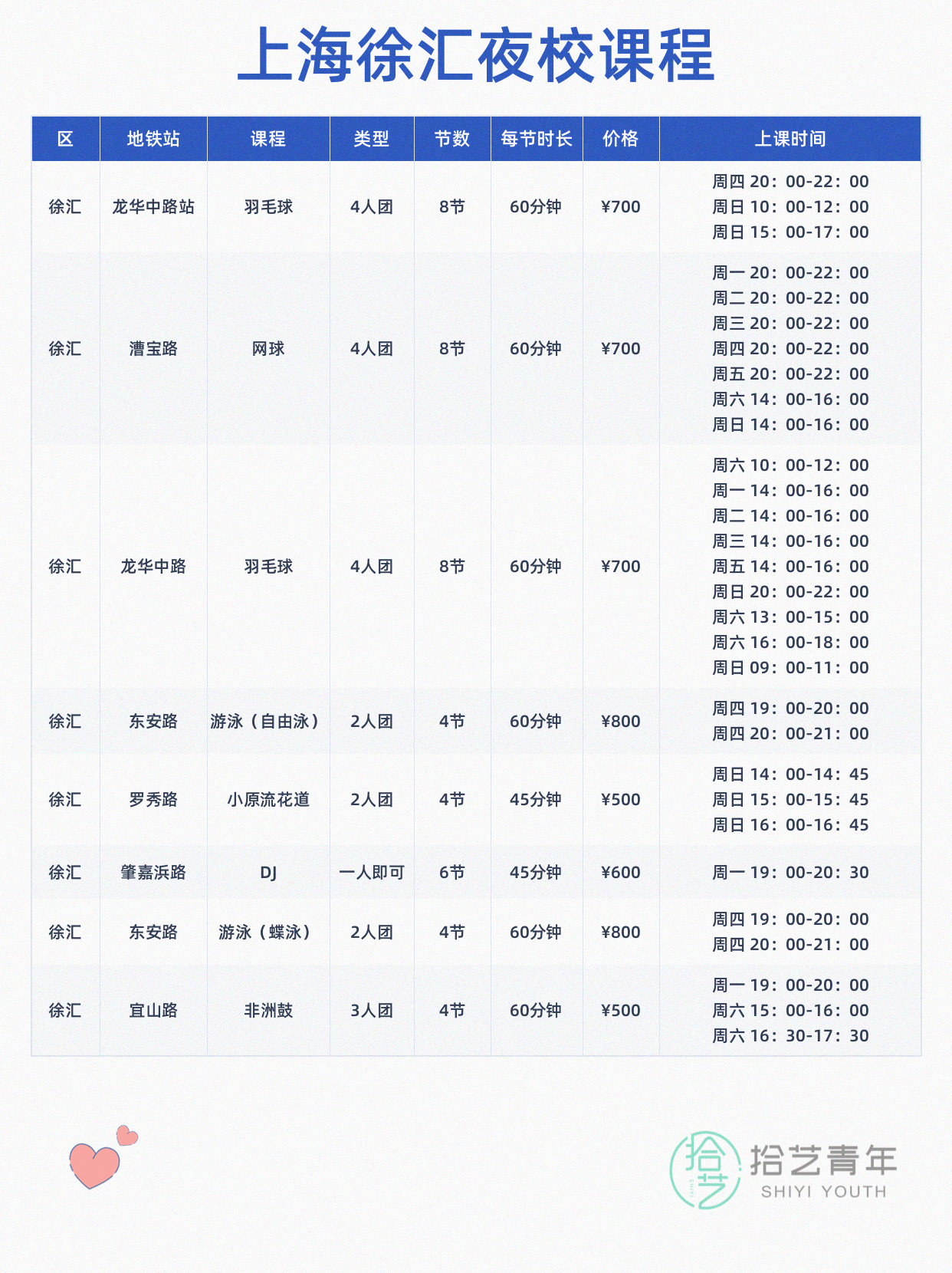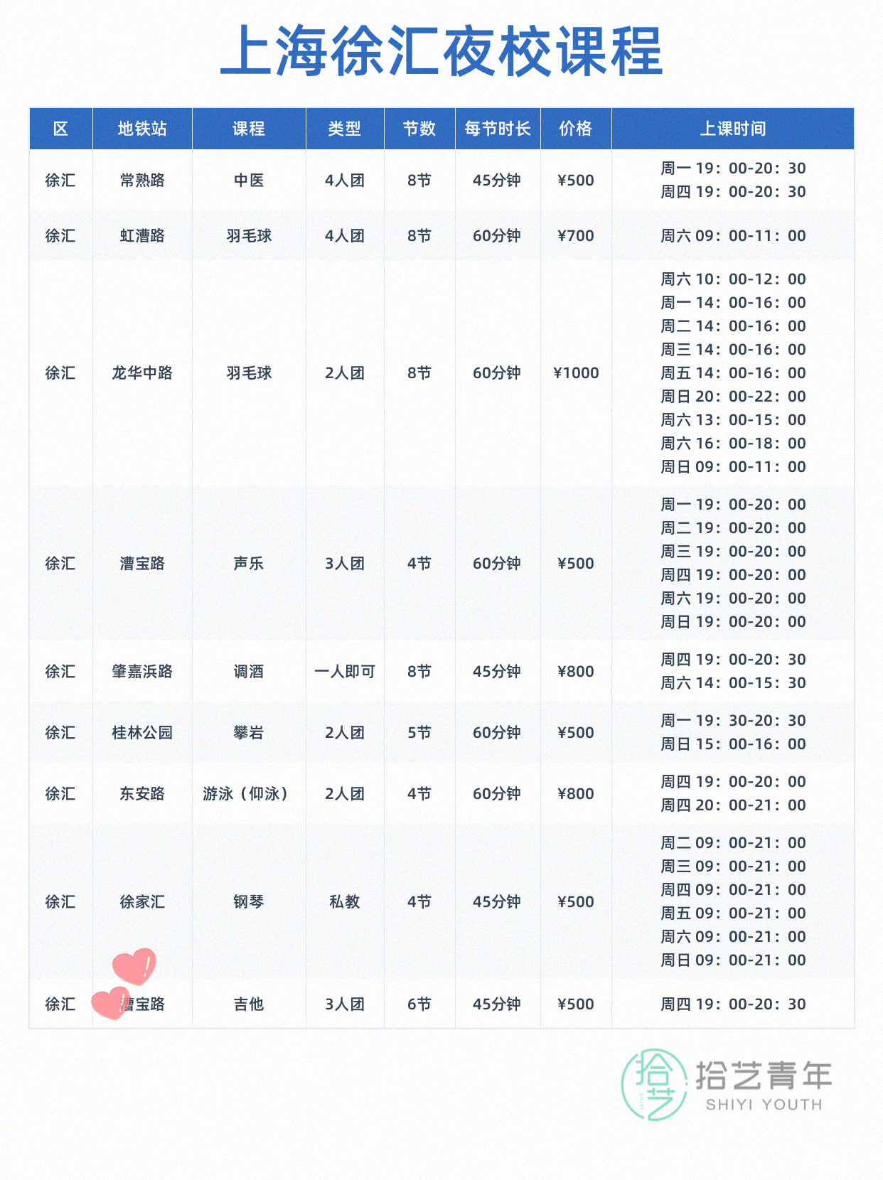 资讯>综合>正文蹲到徐汇夜校课啦拾艺青年2026-04-051 / 4蹲到徐汇夜校课啦!🎸尤克里里 🥁架子鼓 🎾网球都安排上了地铁直达,下班走过去就行手慢估计要被抢光相关标签##上海夜校##徐汇##打工人日常##兴趣爱好##下班后生活