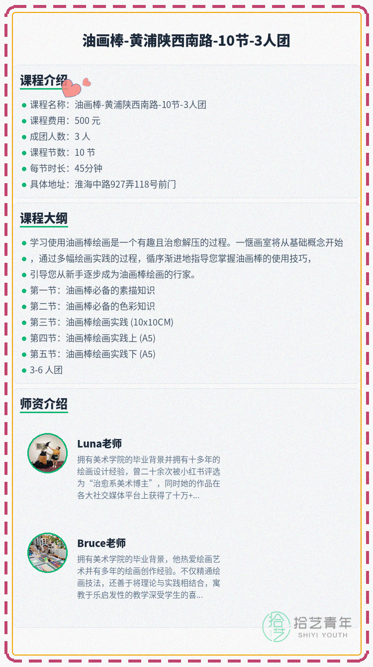 #上海夜校 #黄浦夜校 #油画棒课程 #夜校拼团 #上海线下课