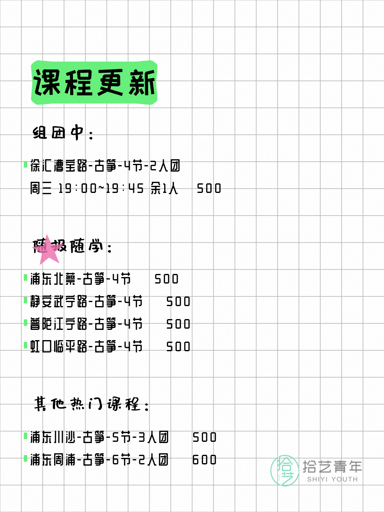 ⭐ 古筝-浦东川沙-5节-3人团 💰500