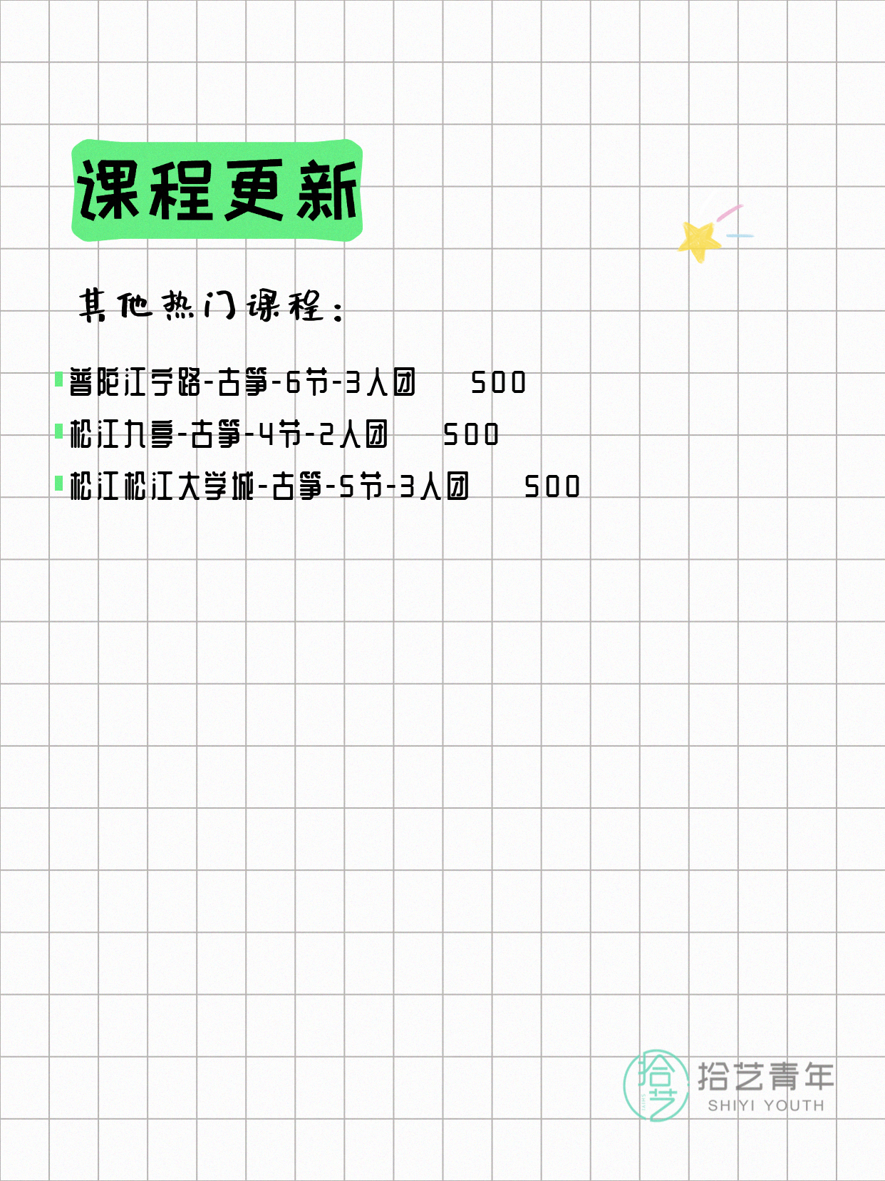 ⭐ 古筝-松江松江大学城-5节-3人团 💰500