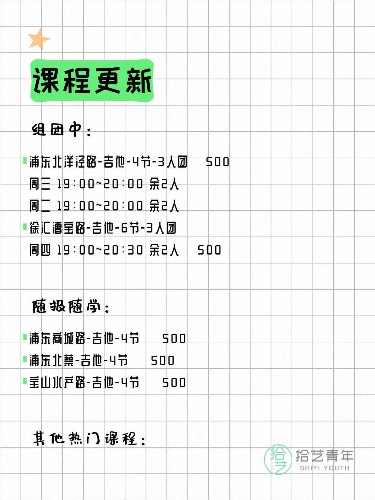 🔥 吉他-浦东北洋泾路-4节-3人团 💰500