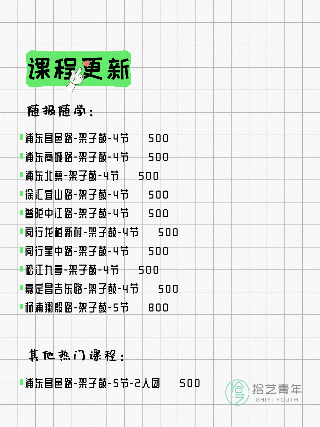 📌 架子鼓-浦东商城路-4节-一人即可 💰500