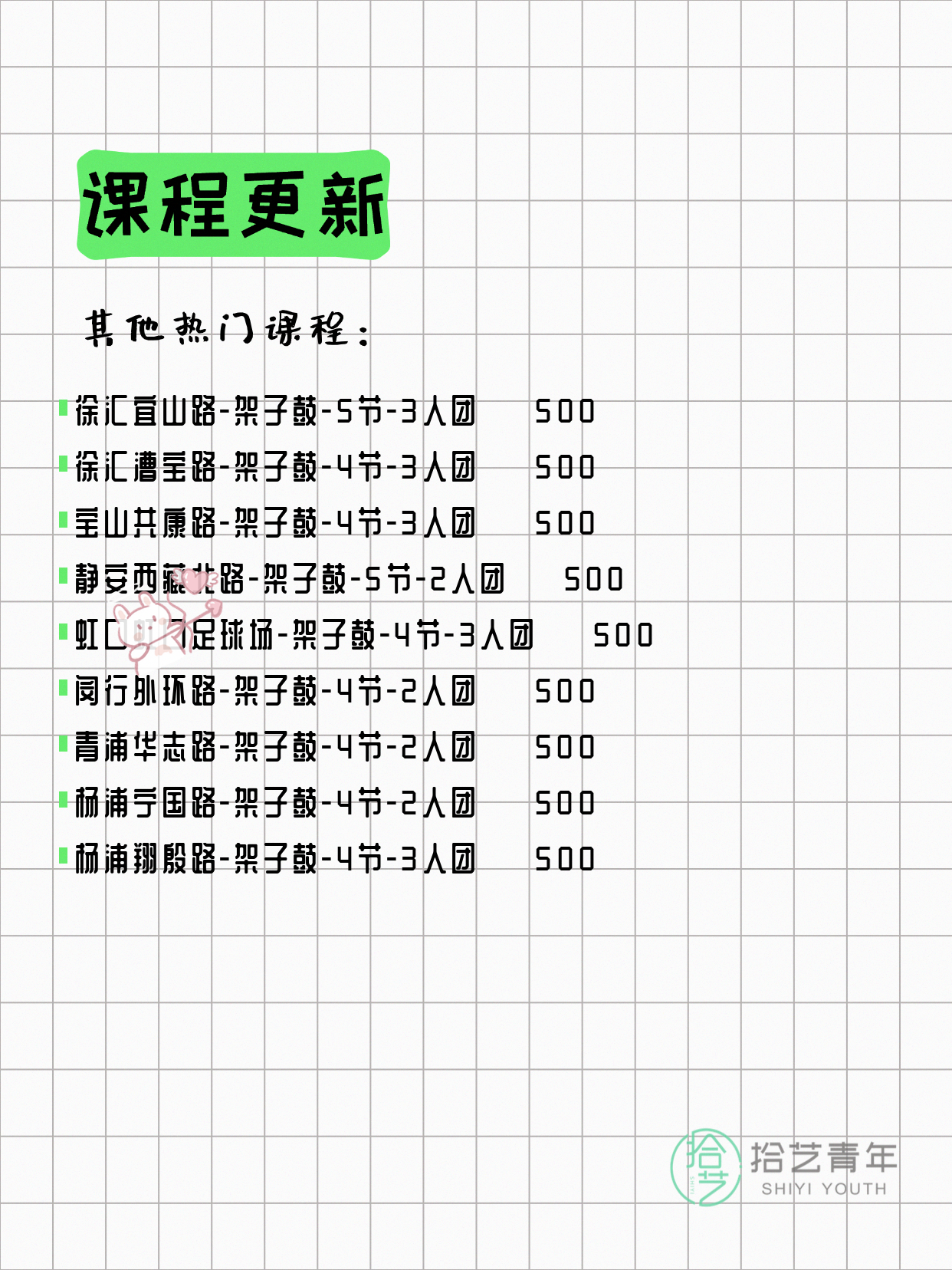 💡 提示:以上课程信息来自拾艺青年小程序,课程可能随报名动态变化,具体以小程序实时信息为准。
