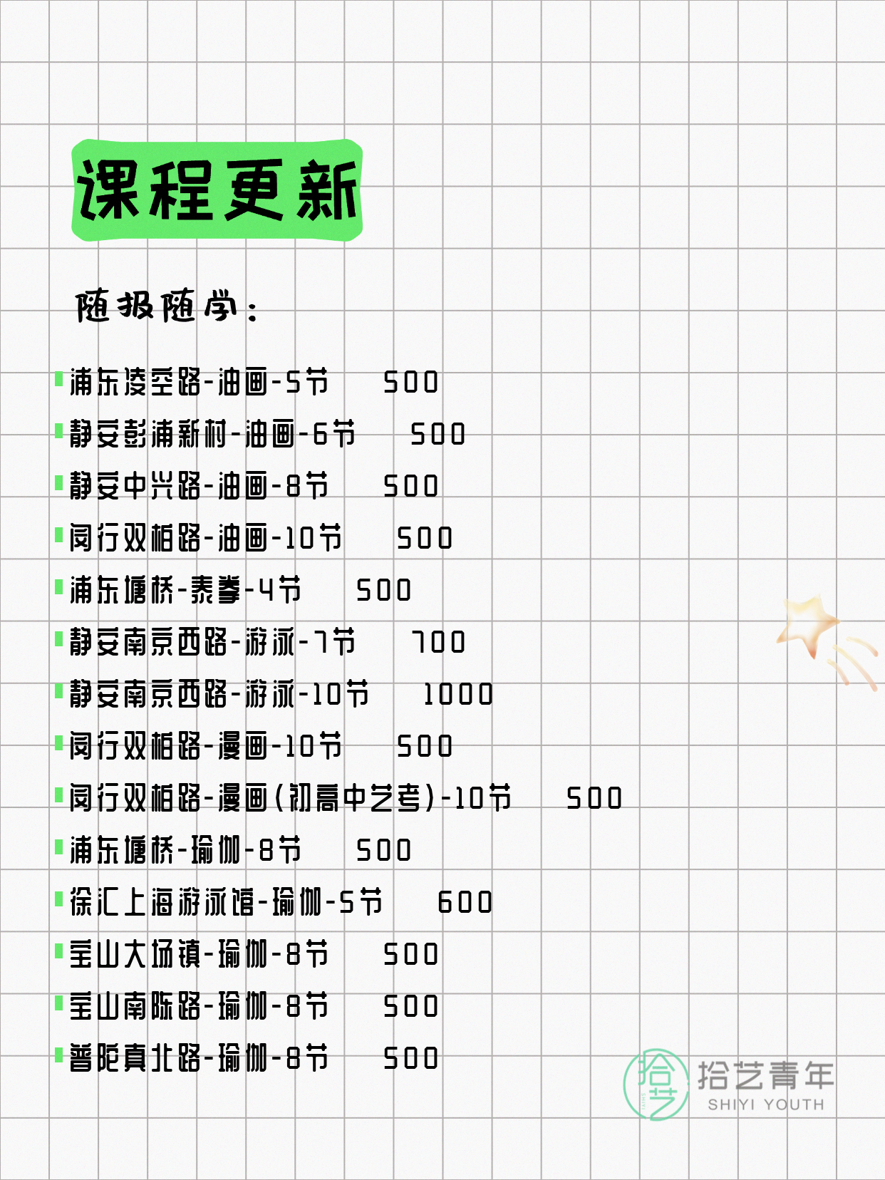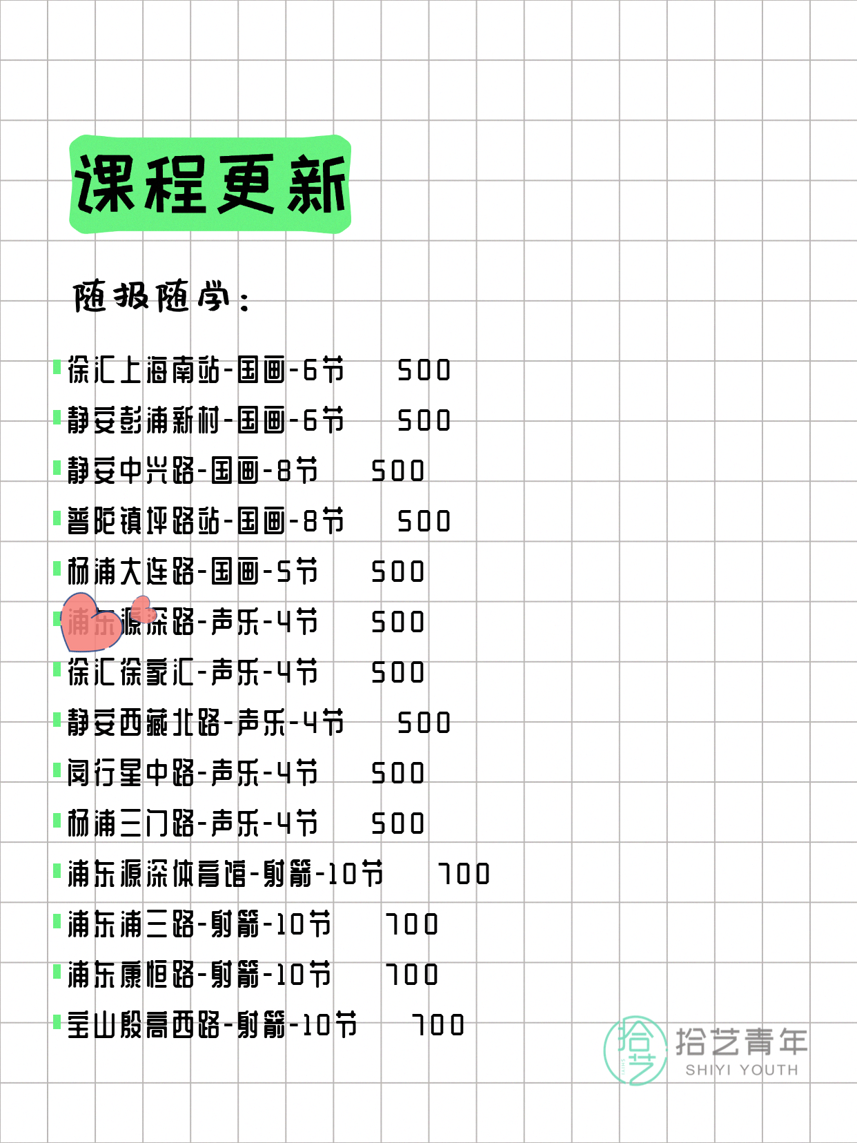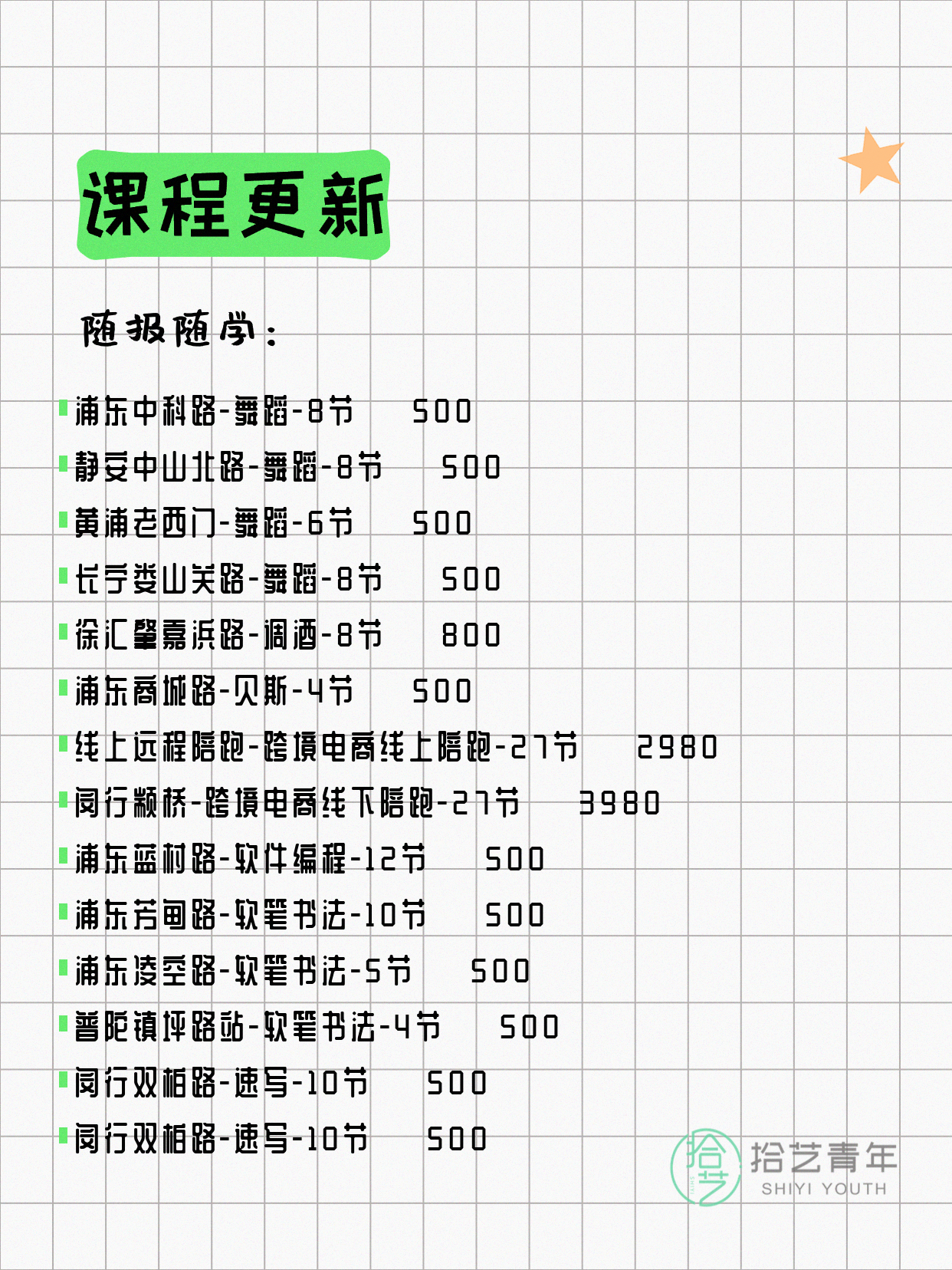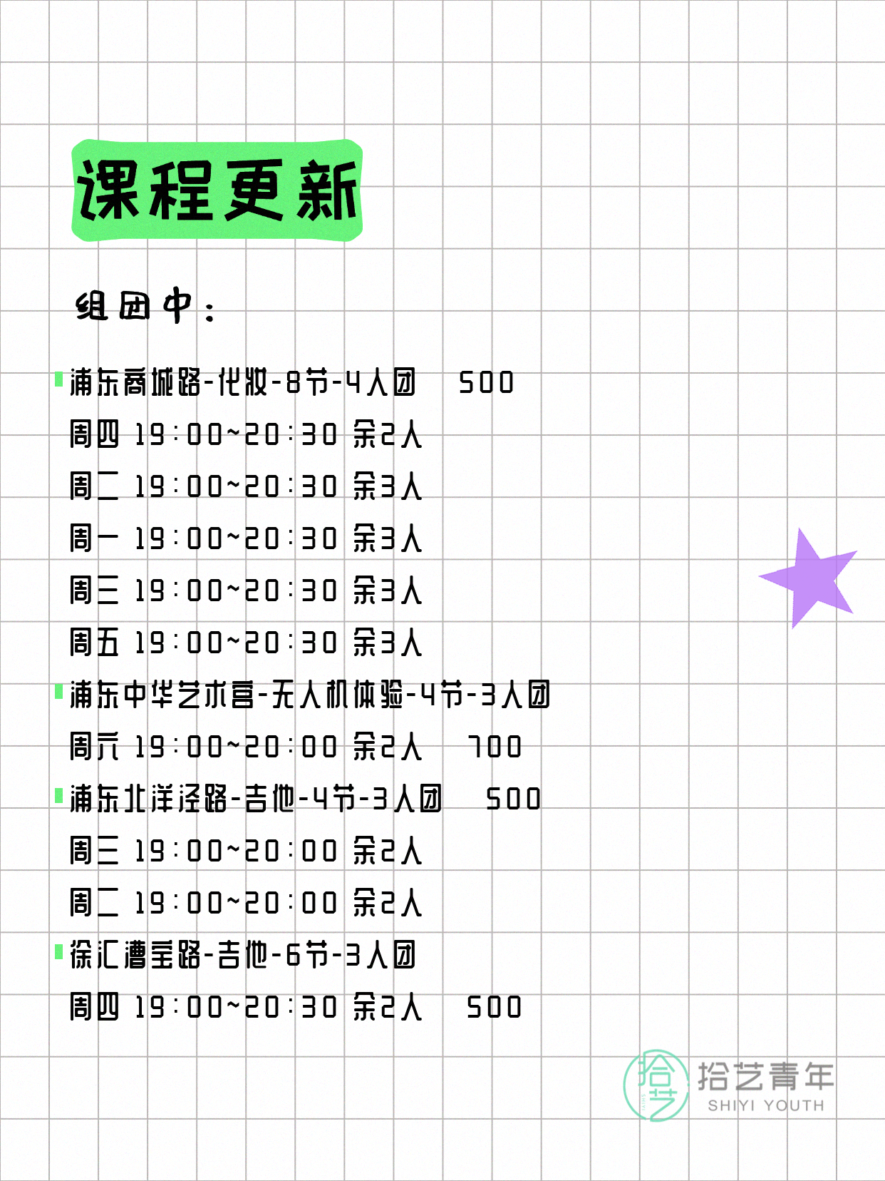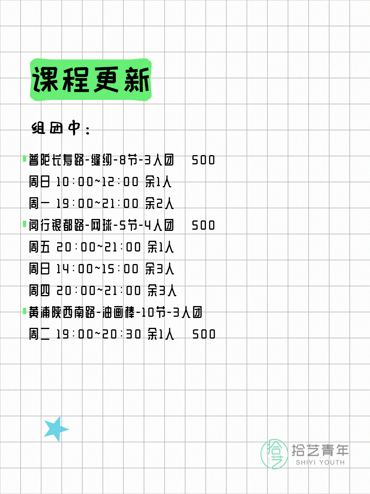 资讯>综合>正文4月6日上海夜校课程合集拾艺青年2026-04-06·2 阅读1 / 17📊 本期课程概况• 总课程数:367门• 组团中课程:61门• 覆盖区域:15个区详见图片,欢迎报名咨询。💡 提示:以上课程信息来自拾艺青年小程序,课程可能随报名动态变化,具体以小程序实时信息为准。👉 微信小程序链接:#小程序://拾艺青年/WmfwH22mnQUxZwb
