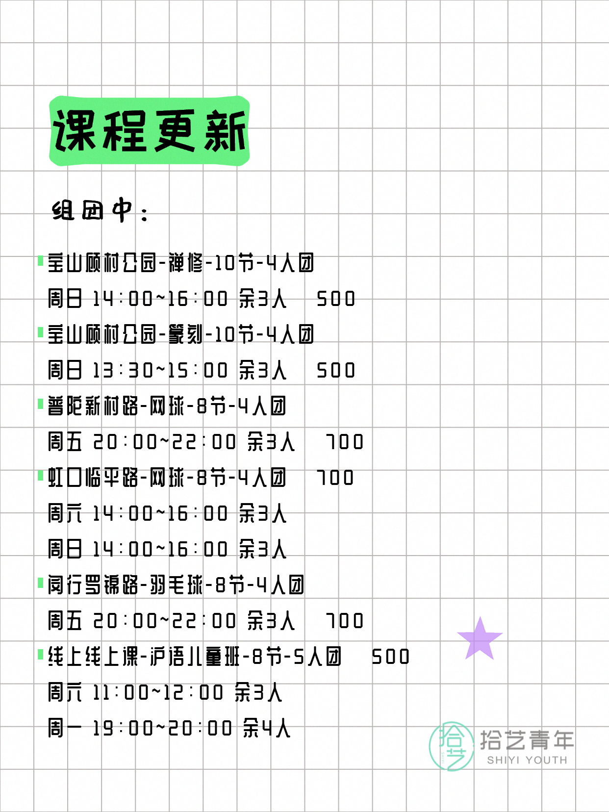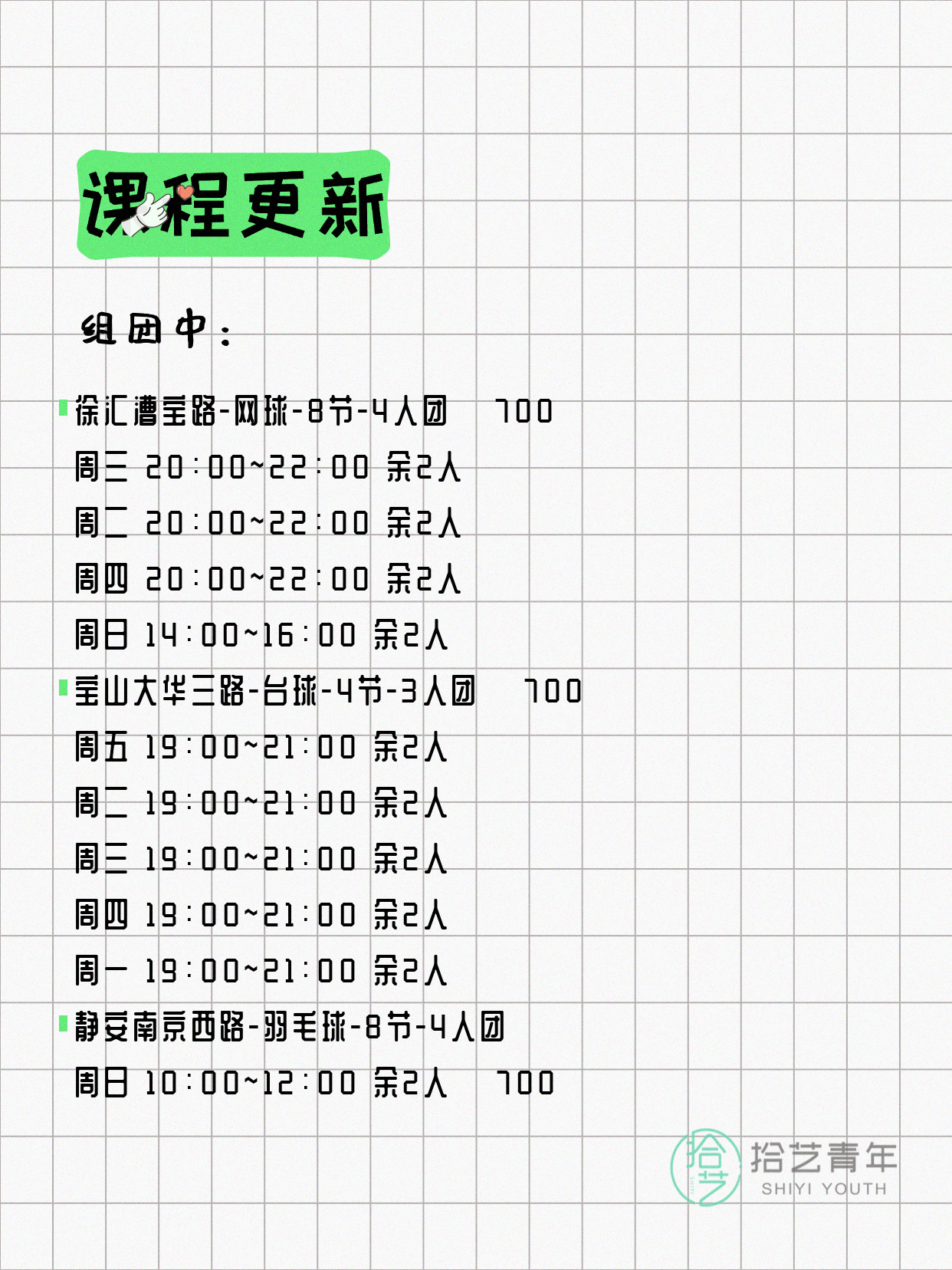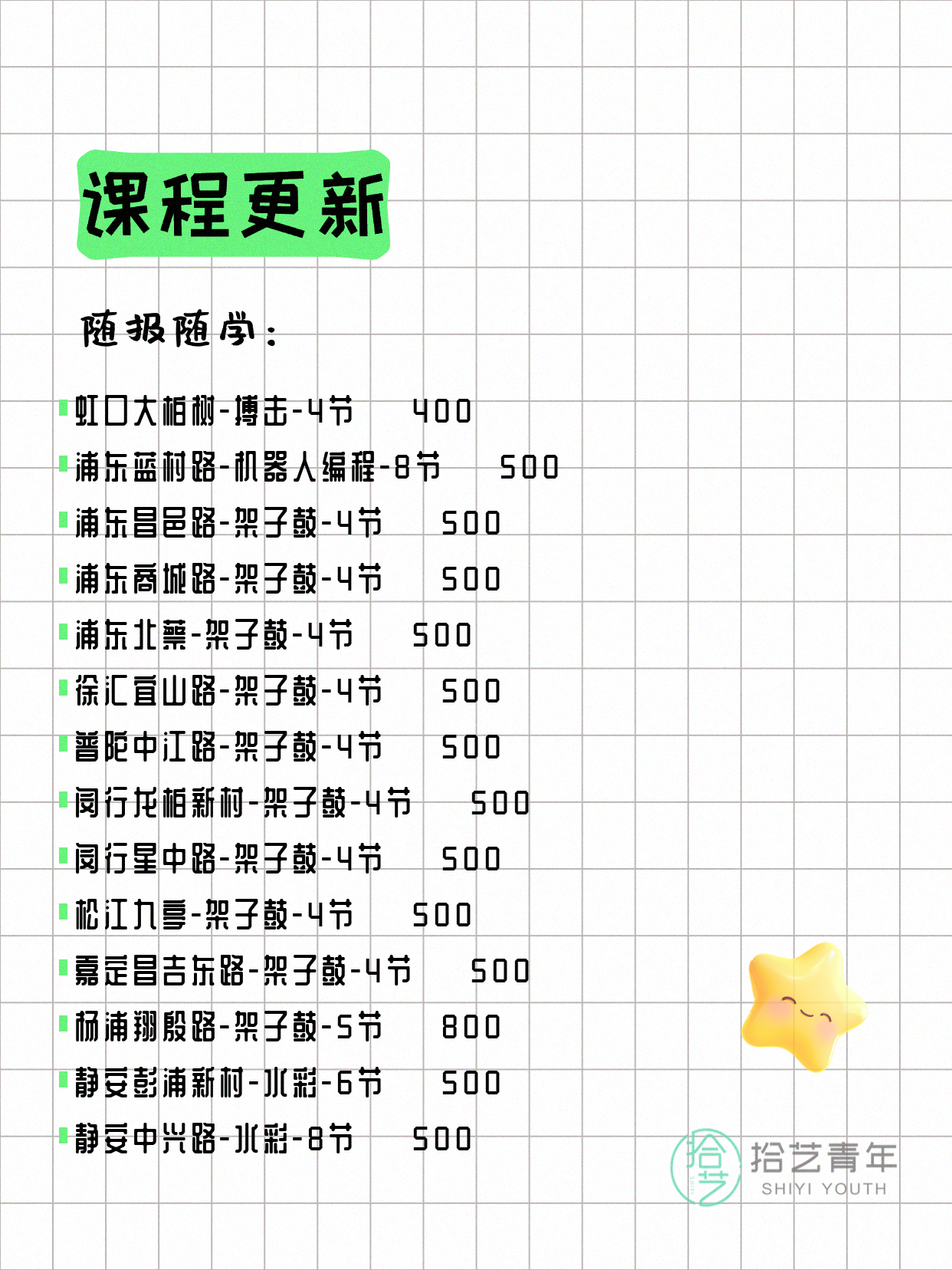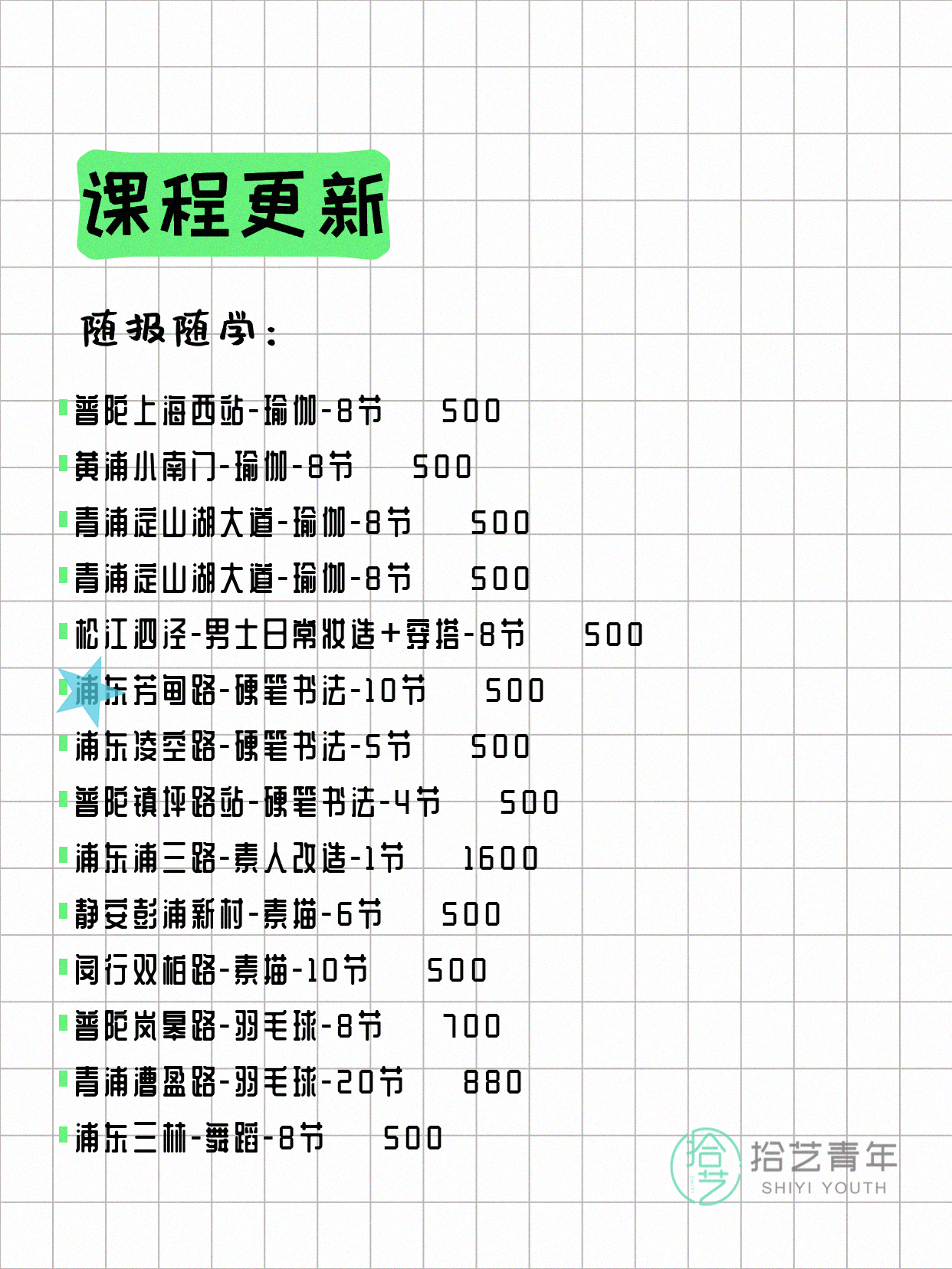 资讯>综合>正文4月6日上海夜校课程合集拾艺青年2026-04-06·2 阅读1 / 17📊 本期课程概况• 总课程数:367门• 组团中课程:61门• 覆盖区域:15个区详见图片,欢迎报名咨询。💡 提示:以上课程信息来自拾艺青年小程序,课程可能随报名动态变化,具体以小程序实时信息为准。👉 微信小程序链接:#小程序://拾艺青年/WmfwH22mnQUxZwb