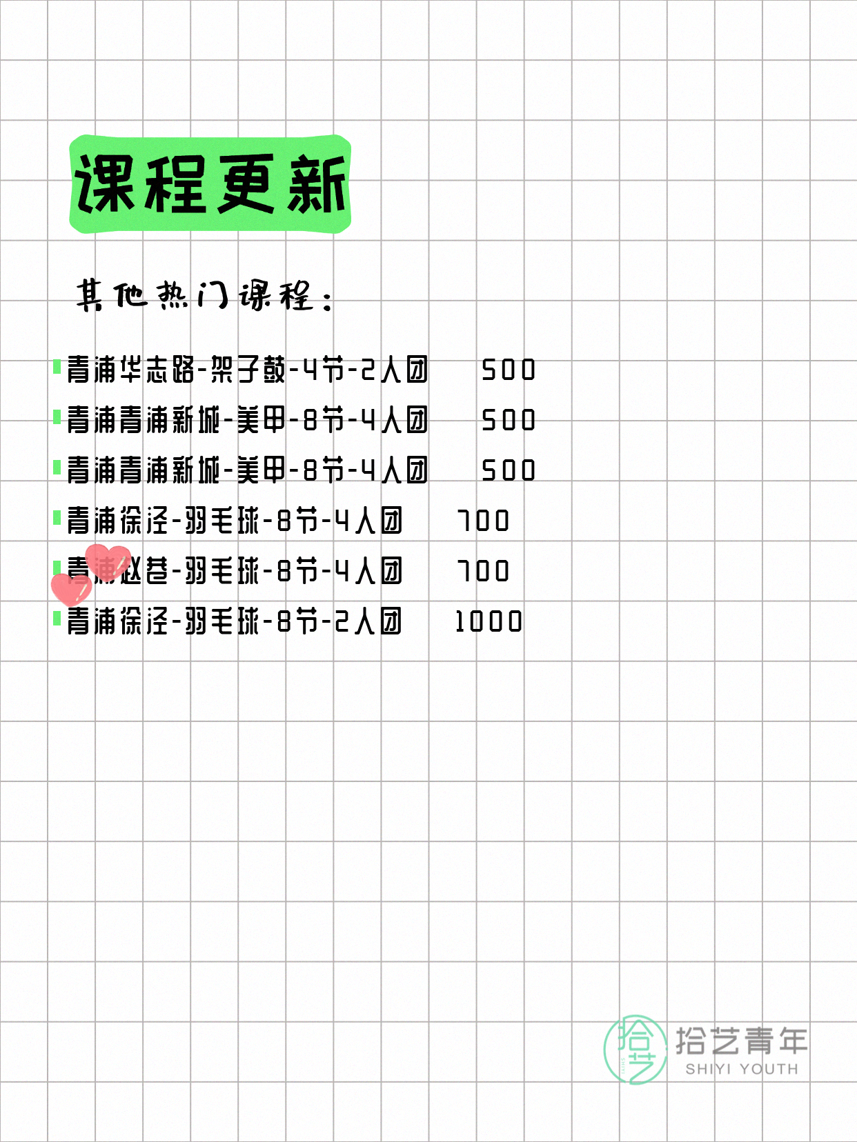 📌 羽毛球-青浦漕盈路-20节-一人即可 💰880