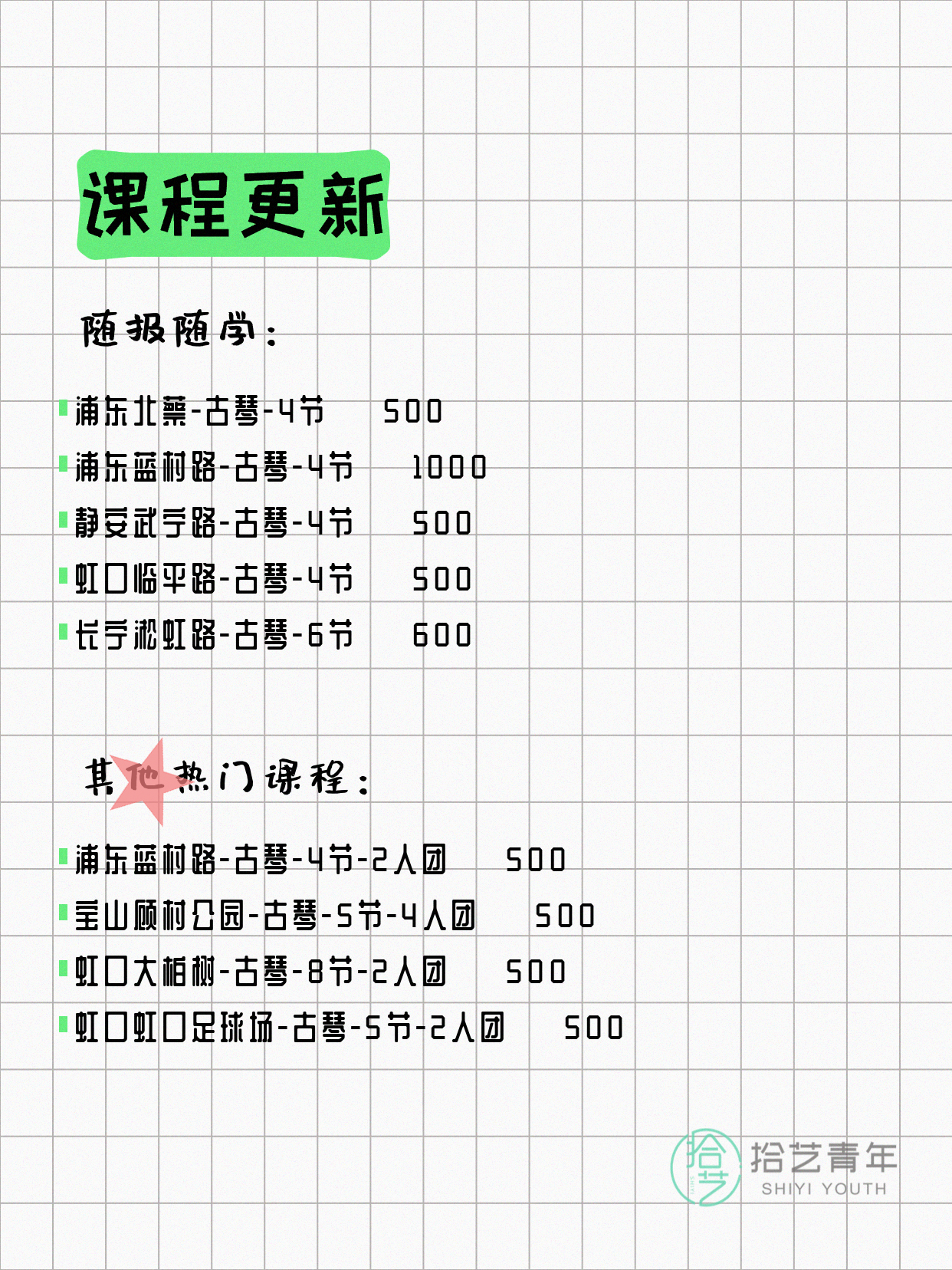 ⭐ 古琴-浦东蓝村路-4节-2人团 💰500