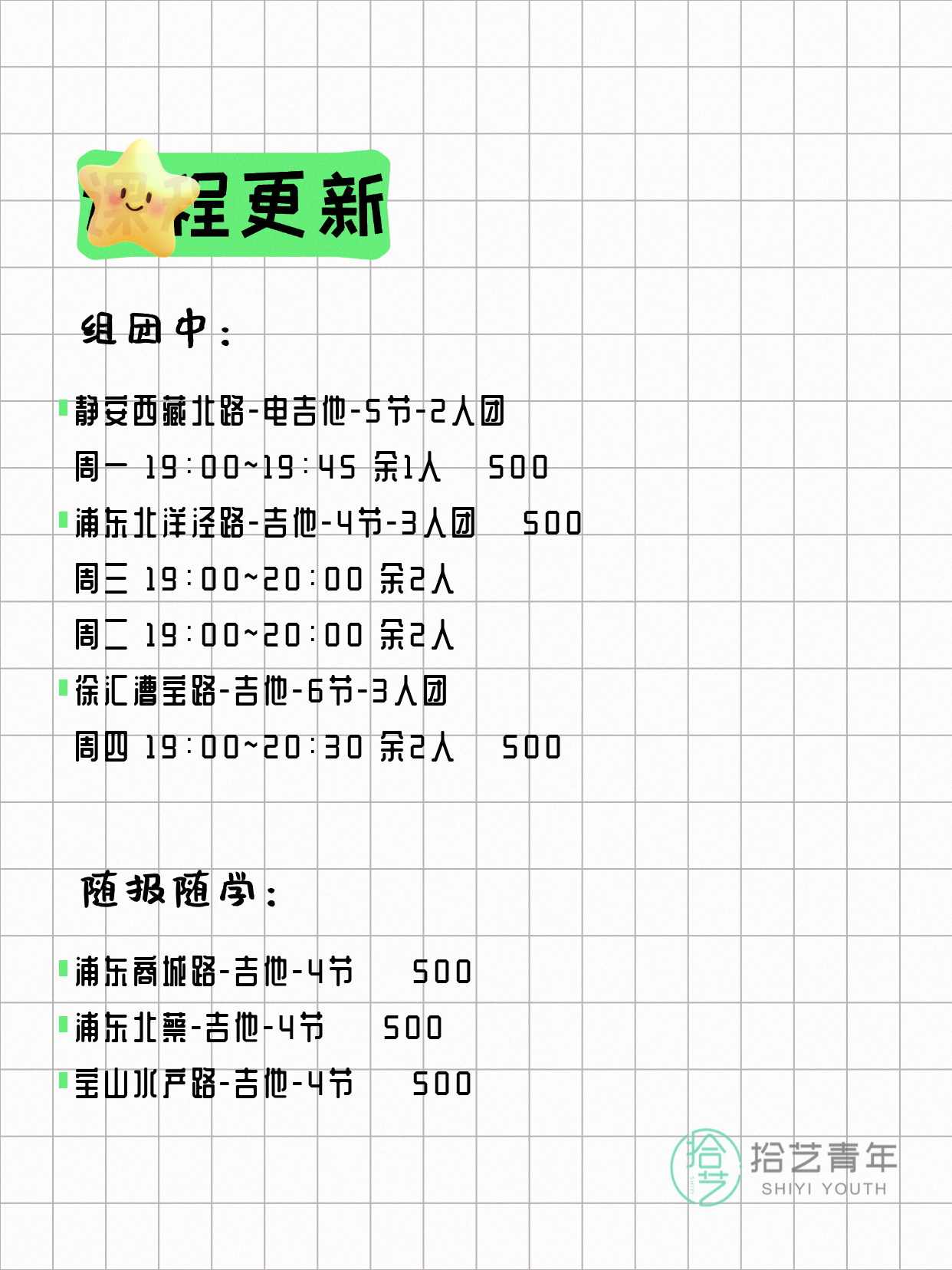 🔥 吉他-浦东北洋泾路-4节-3人团 💰500