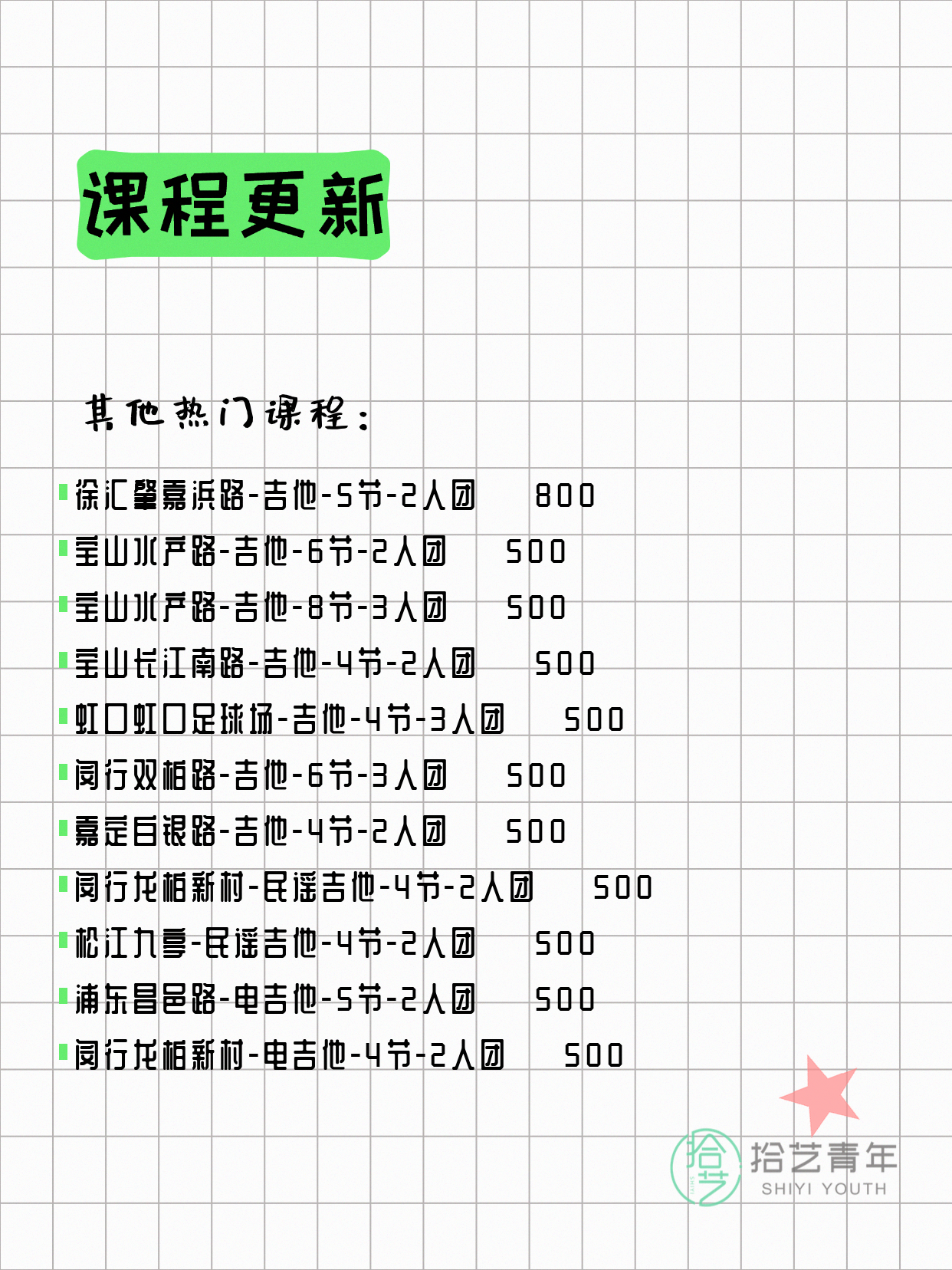 ⭐ 吉他-宝山水产路-6节-2人团 💰500