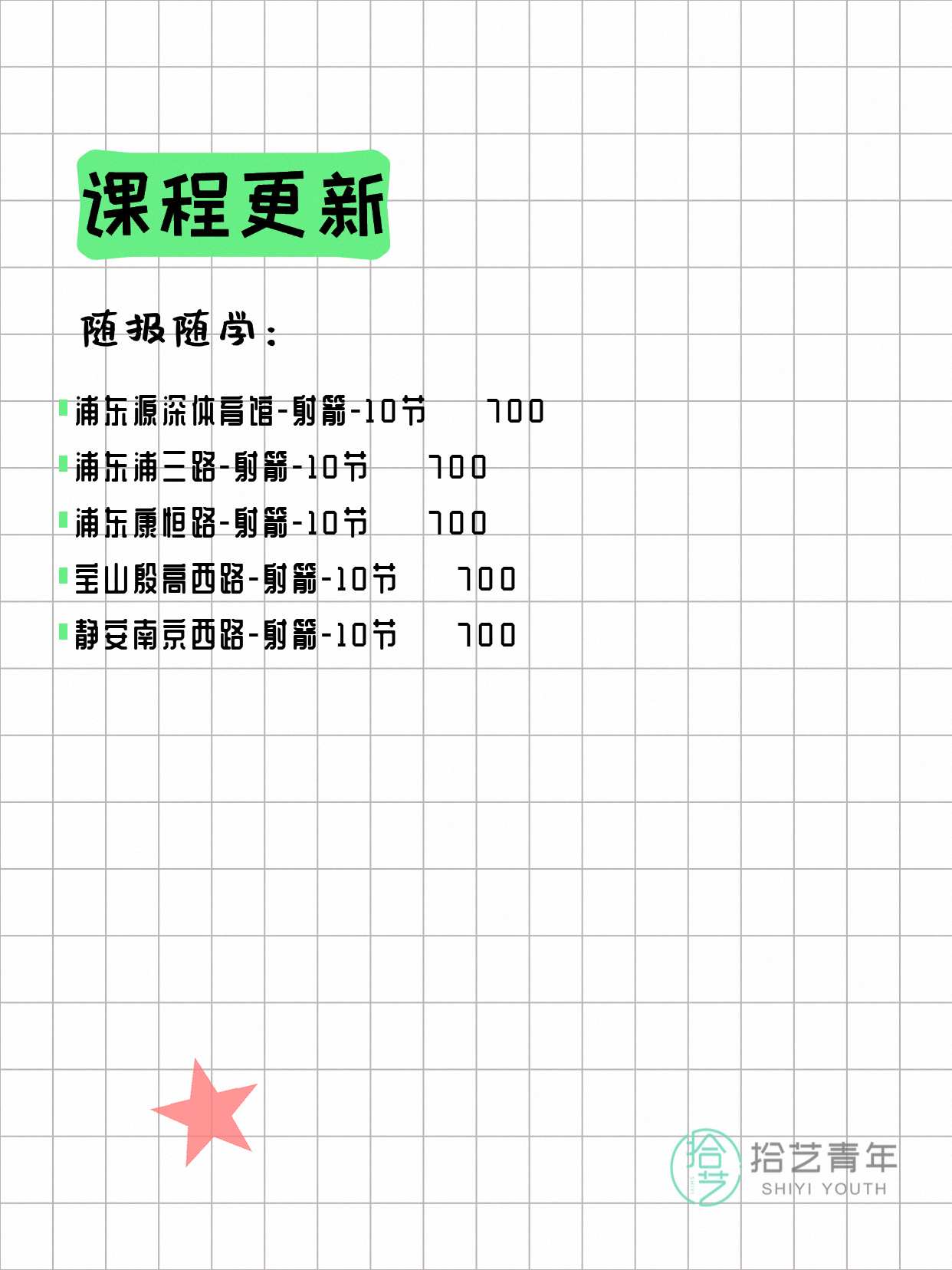 💡 提示:以上课程信息来自拾艺青年小程序,课程可能随报名动态变化,具体以小程序实时信息为准。